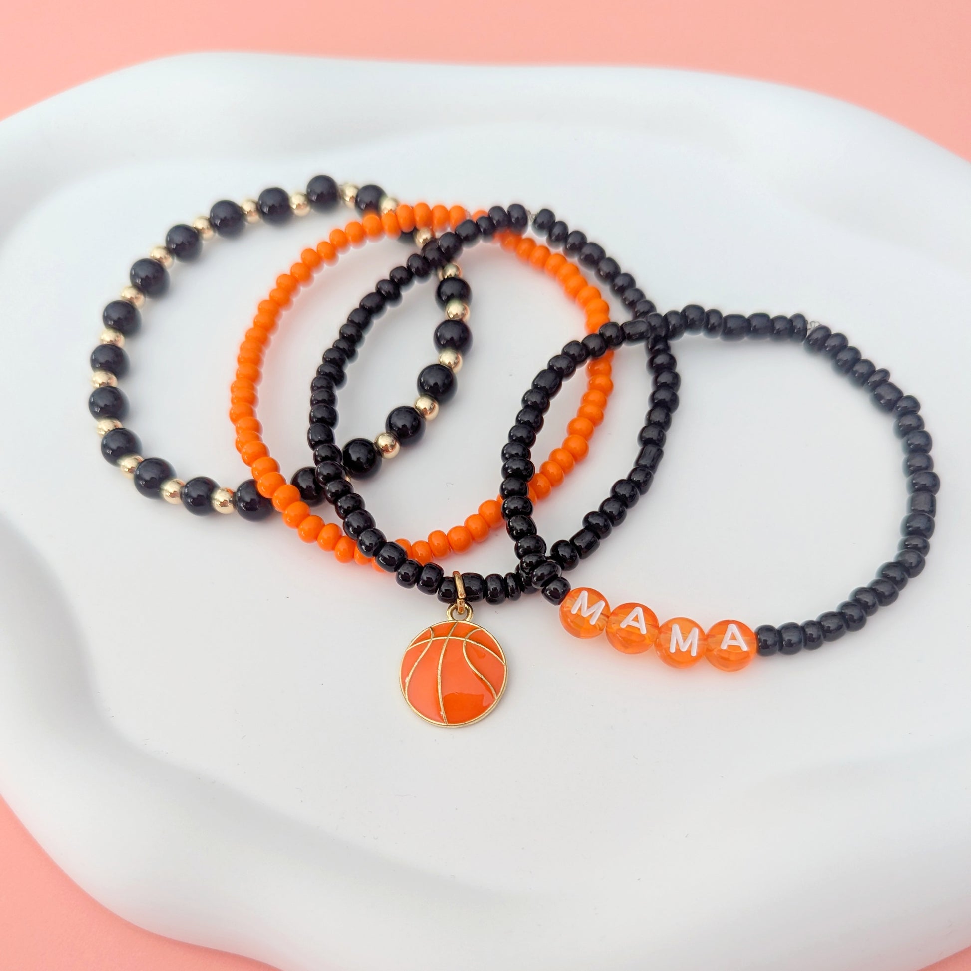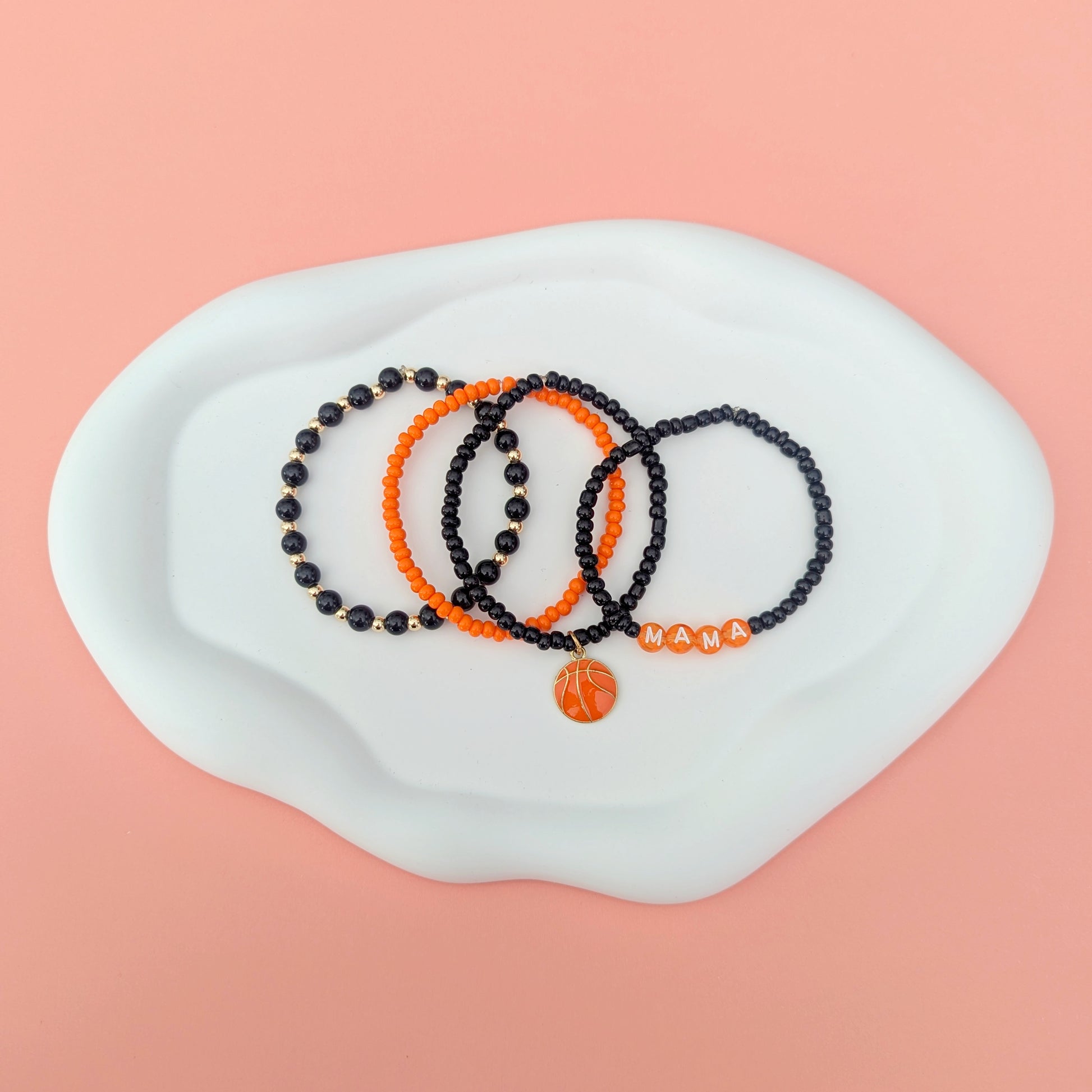Introducing our Basketball Mama Bracelet Stack, perfect for the sporty and supportive mom. This stack features a bold orange and black color combination that will make any outfit pop. Show off your love for basketball and your role as a mom with this stylish accessory.