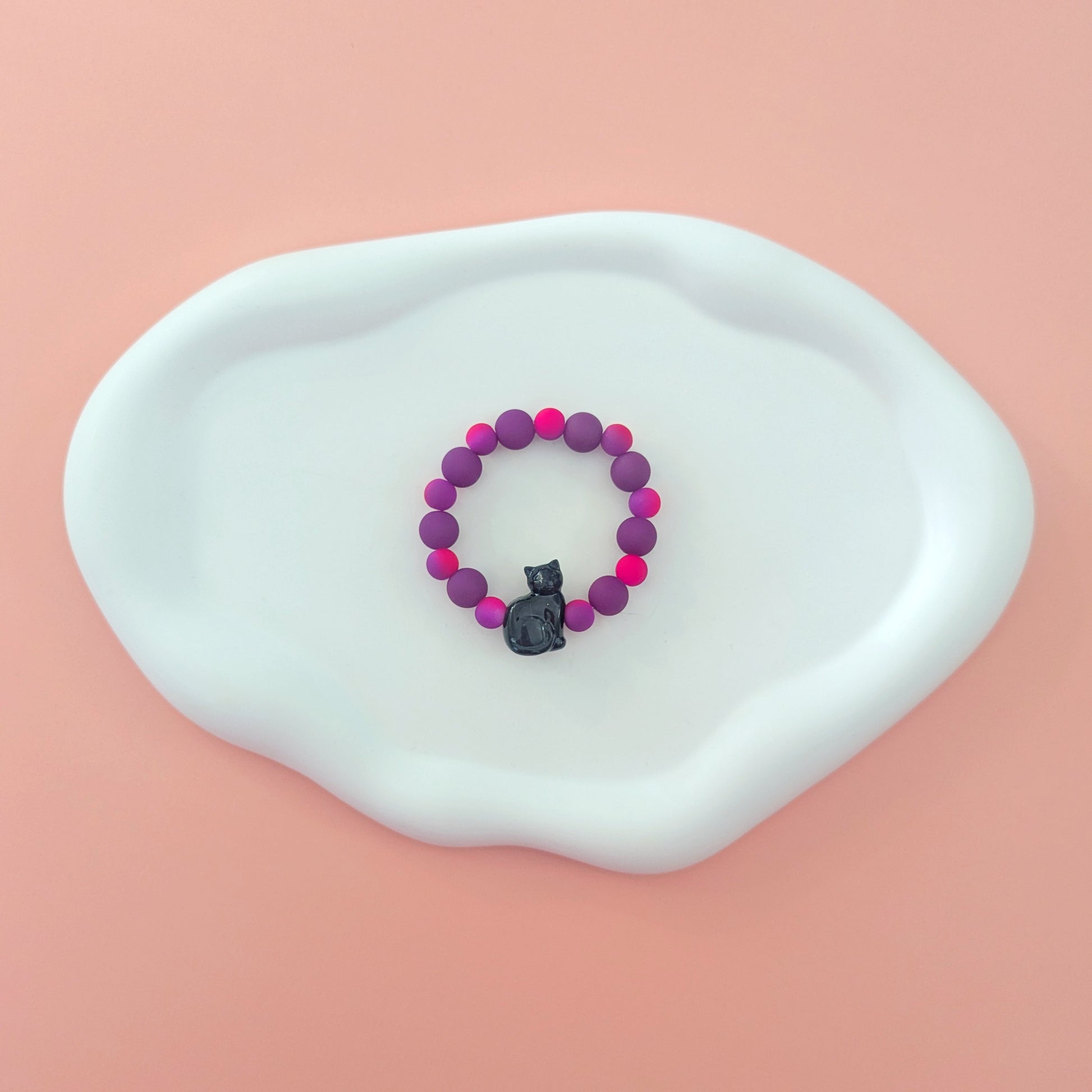 Add a touch of feline charm to any outfit with our Black Cat Bracelet. Featuring a striking black cat focal bead, this bracelet adds a pop of color with purple and pink accents. Perfect for any cat lover, it's a stylish way to show off your love for our furry friends.