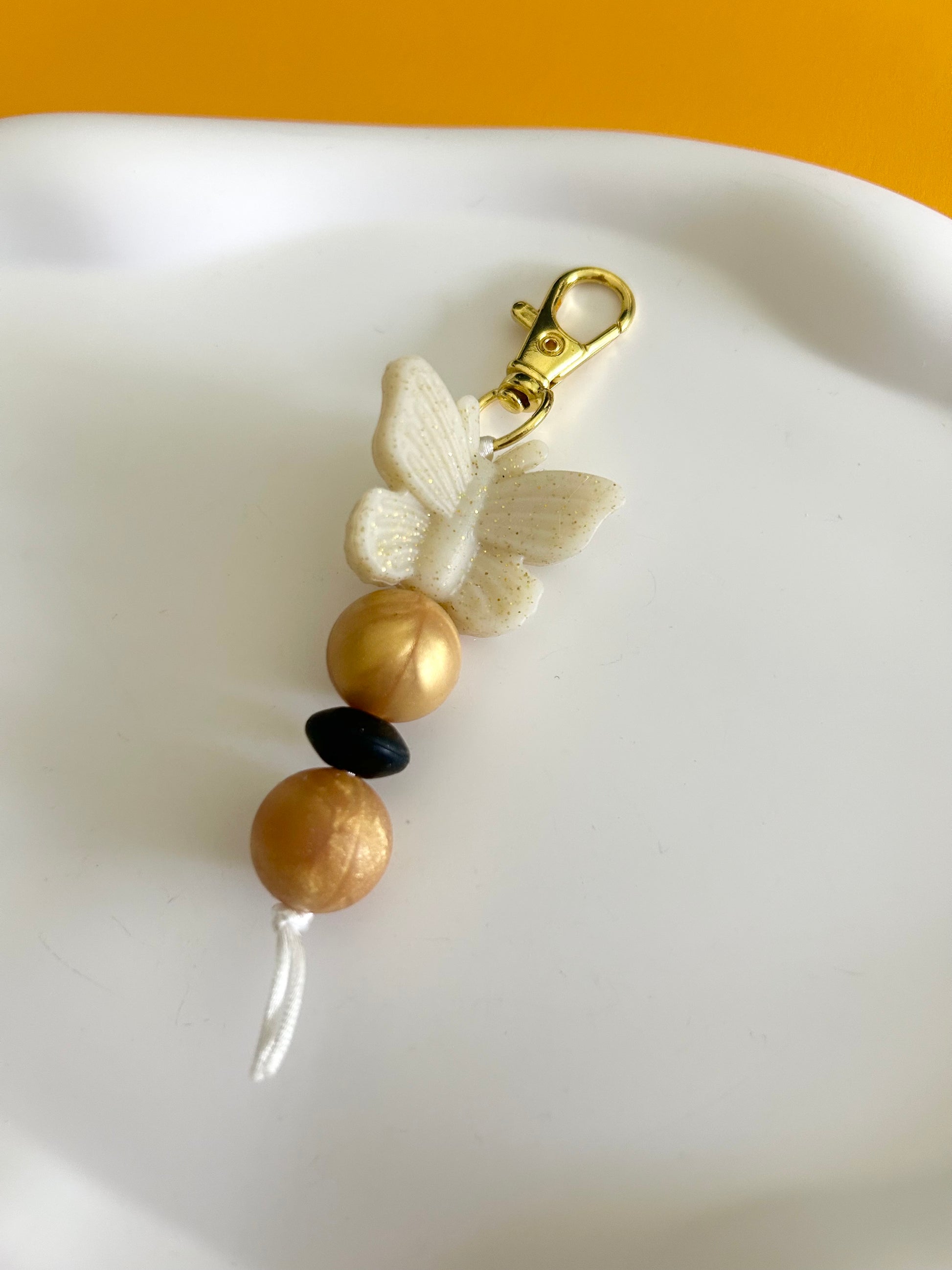 Add a touch of magic to your little one’s backpack with this playful Butterfly Backpack Clip. Featuring a cream butterfly centerpiece sprinkled with shimmering gold sparkles, it’s perfect for brightening up school days or outdoor adventures. Lightweight and easy to attach, this clip adds charm and personality wherever it goes.