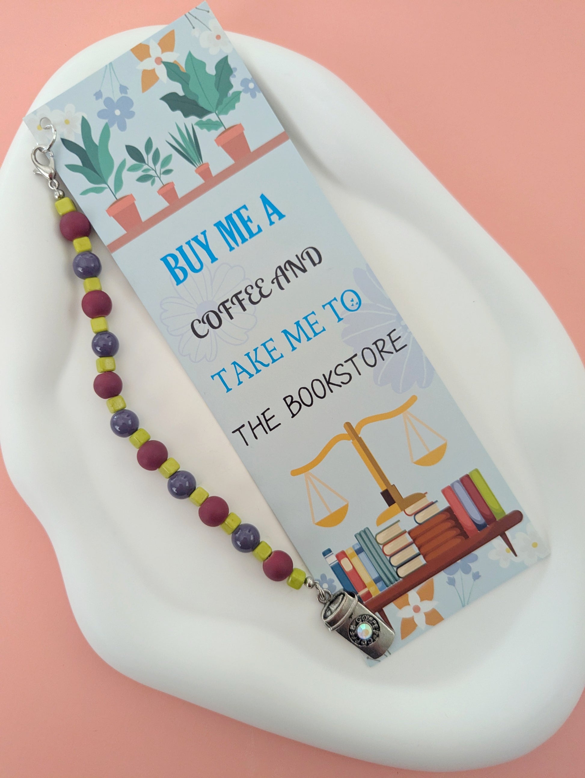 Elevate your reading experience with our Buy Me Coffee and Take Me to the Bookstore Bookmark. Crafted from durable paper, it features a clip on bead strand with a charming coffee cup charm. Embrace the cozy vibes of your favorite cafe while getting lost in the pages of your next read.