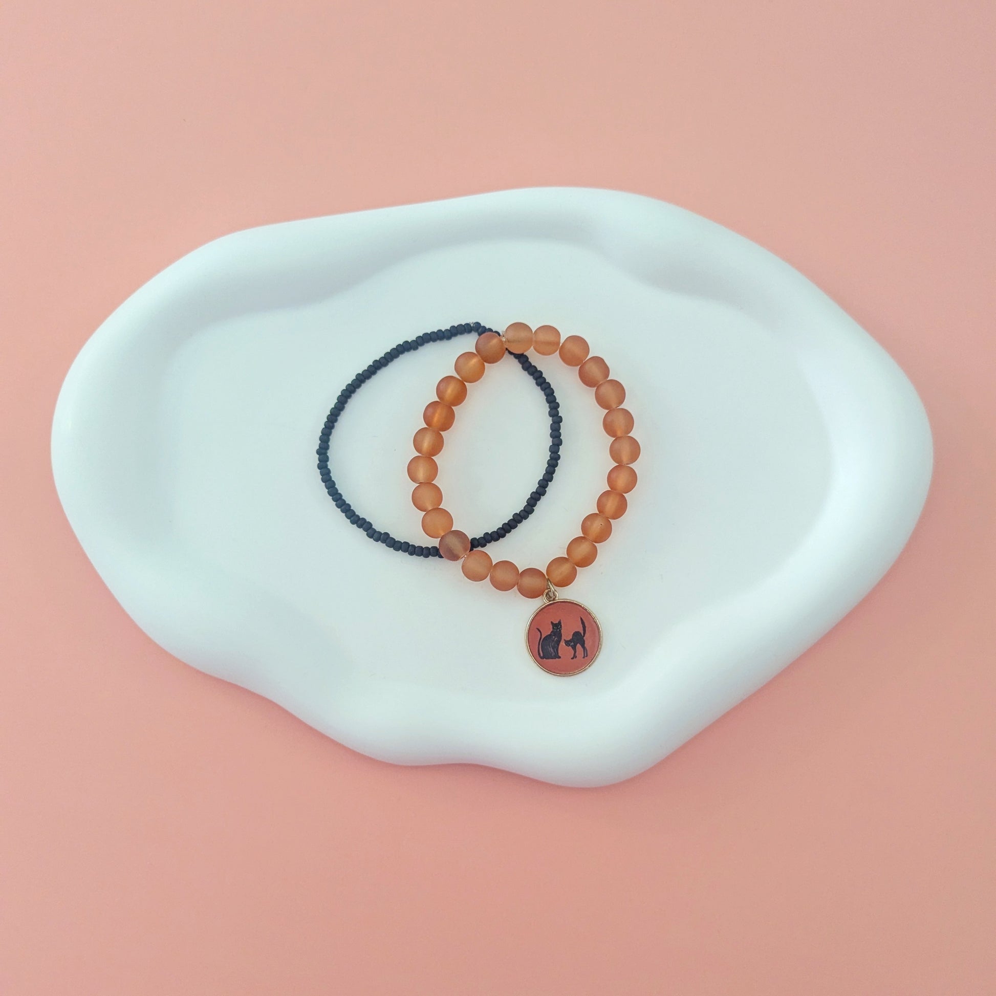 Add a festive touch to your Halloween outfit with our Cat Charm Stack. Featuring a charming cat charm in bold orange and black colors, this accessory is perfect for cat lovers and Halloween enthusiasts alike. Made with high-quality materials, it's sure to add a touch of whimsy to any outfit.