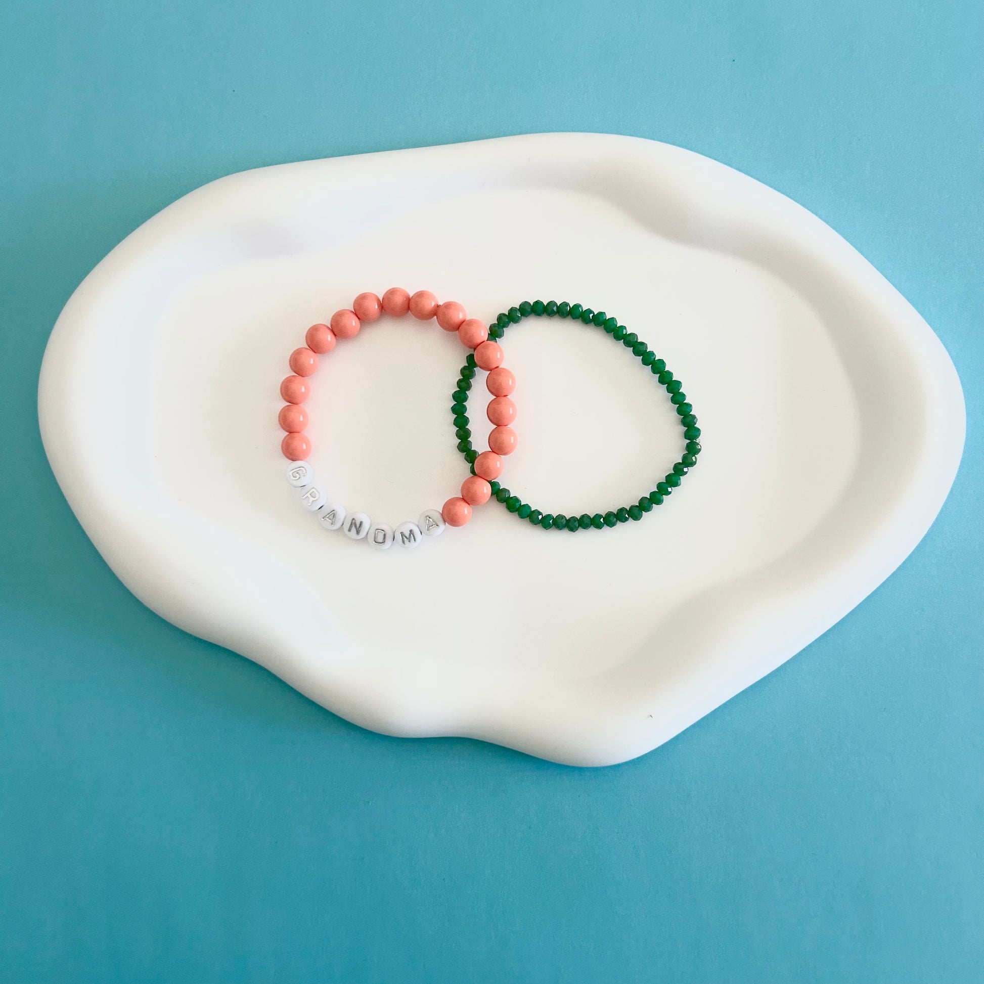 Celebrate grandma’s unique style with this supportive 2-bracelet stack, featuring one gentle pink and one calming green bracelet. Designed to bring comfort and warmth, these bracelets are a thoughtful way to remind her she’s loved every day.