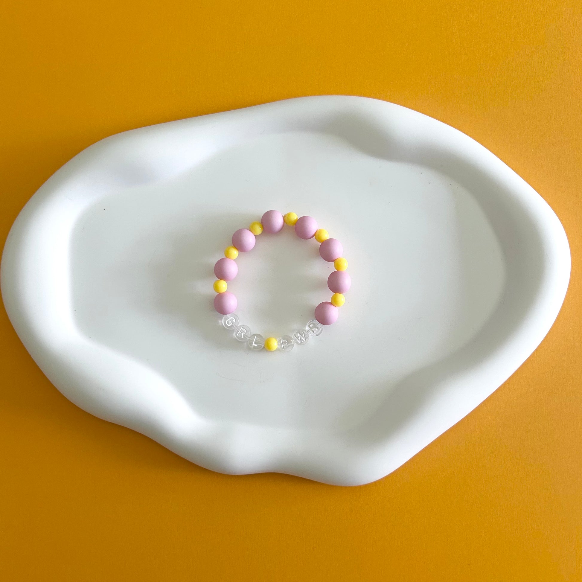 Celebrate confidence and fun with the Grl Pwr Bracelet! This vibrant purple and yellow bracelet boldly declares "girl power," making it the perfect accessory for kids who love to express their strength and spirit. Lightweight and colorful, it’s a playful way to inspire empowerment every day.