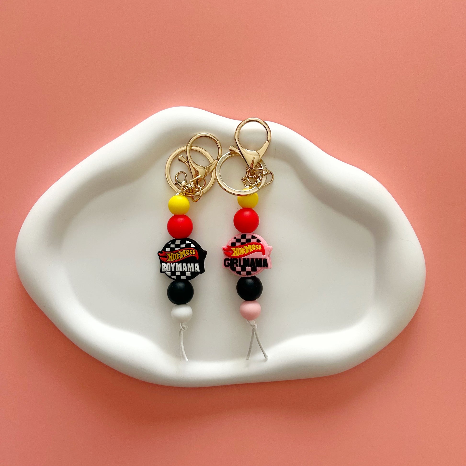 Show off your proud "Hot Mess Mama" status with these playful keychains—one for boy mamas and one for girl mamas. Perfect for adding a fun, sassy touch to your keys or bag while celebrating the beautiful chaos of motherhood. Durable and eye-catching, these keychains are a cheeky reminder that being a mom means embracing the mess with love and laughter.