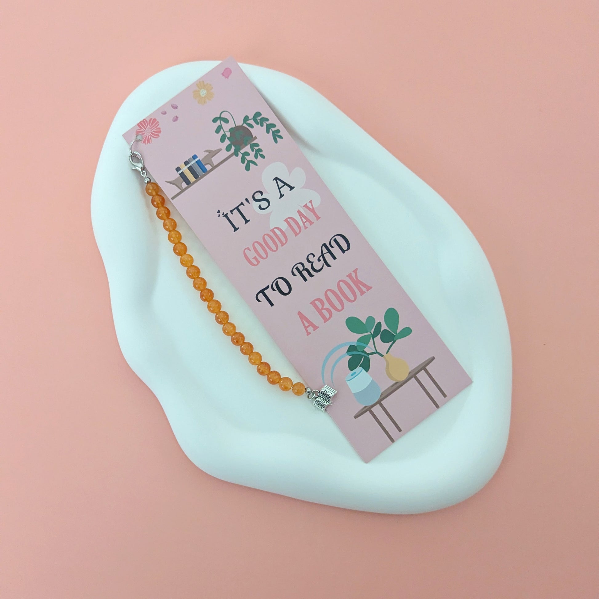 Enhance your reading experience with our "It's a Good Day to Read a Book" bookmark. Crafted from durable paper and featuring a clip-on bead strand with an open book charm, this bookmark is perfect for keeping your place while adding a touch of literary charm to your books. Make every day a good day to read with our bookmark.