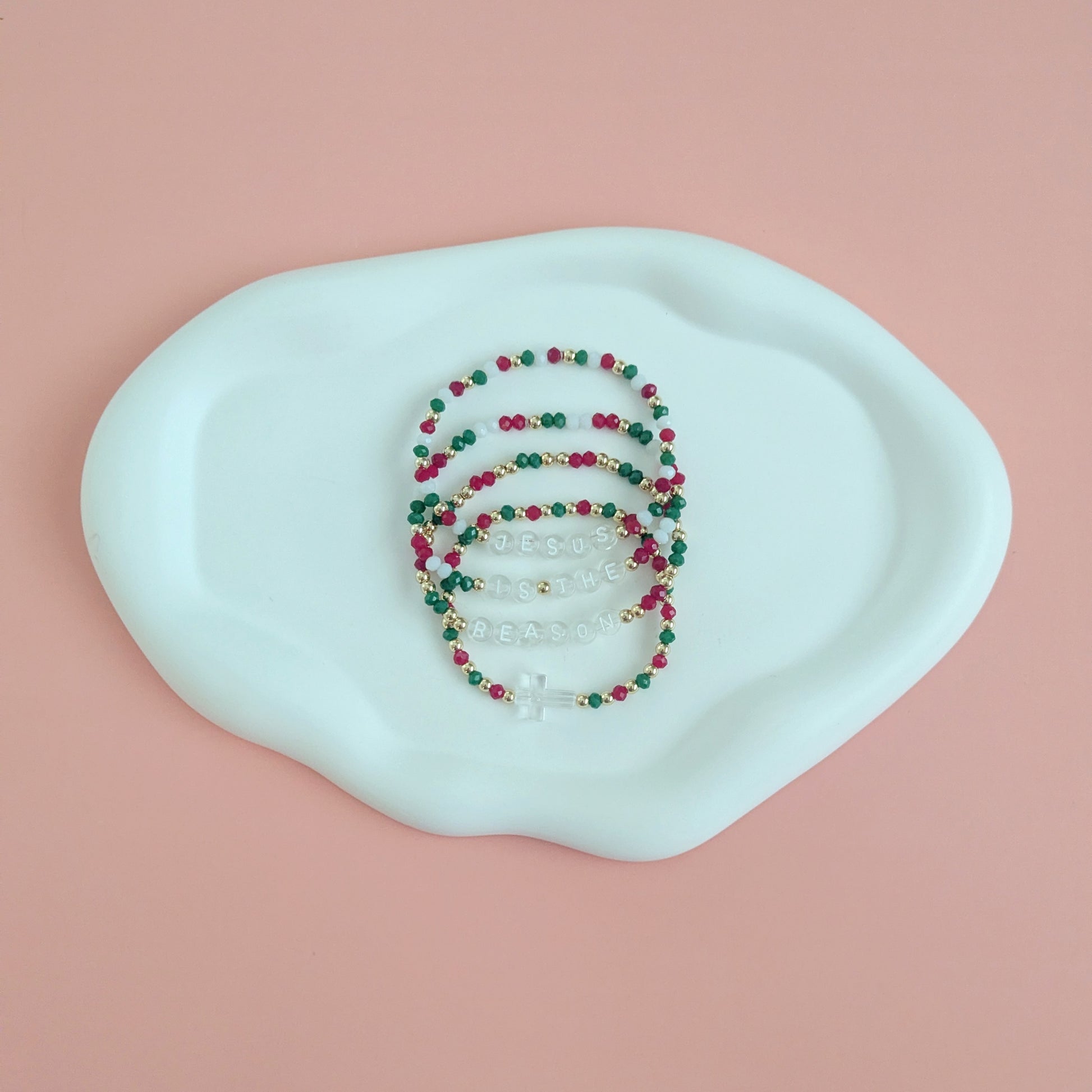 This stylish bracelet stack is a beautiful reminder that Jesus is the reason for the season. Crafted with a faith-inspired design, this stack serves as a daily reminder of the true meaning of Christmas. Show your devotion and spread the message with this meaningful accessory.
