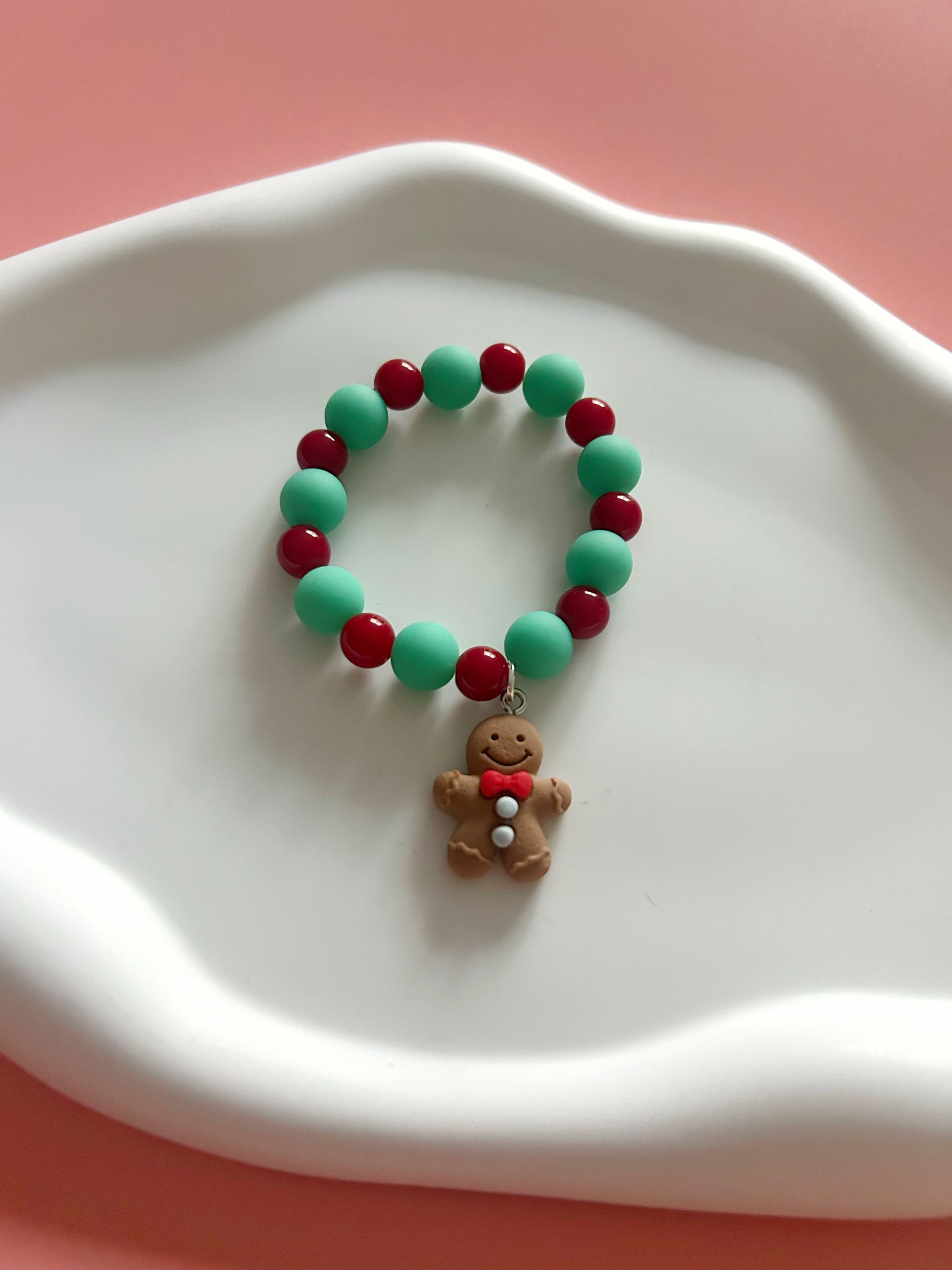 This adorable bracelet is perfect for your little one! With its playful gingerbread man charm, it's sure to add some extra sweetness to any outfit. Let your child's style shine with this unique and fun accessory. (Just don't let them try to eat it!)
