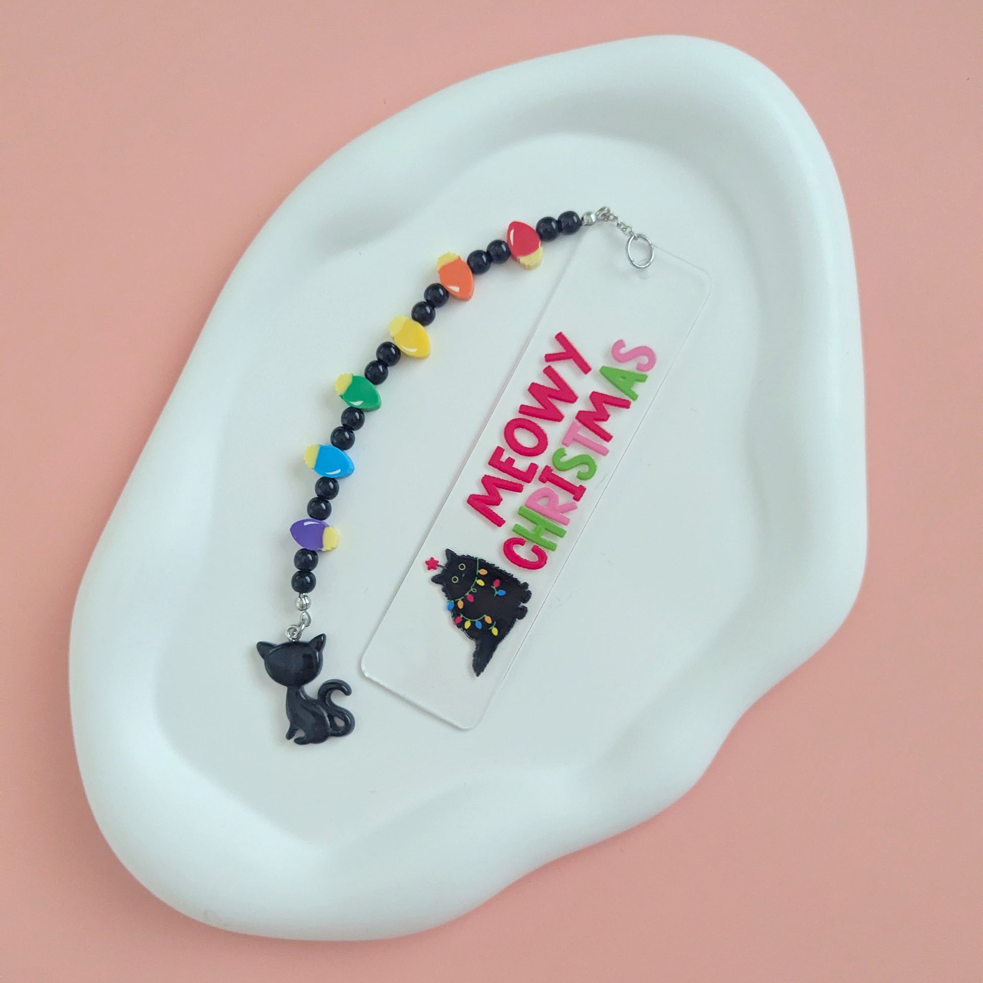 Celebrate the holiday season with our Meowy Christmas Bookmark! The adorable black cat charm adds a touch of feline flair to any reading material. Keep your place with the convenient bookmark feature. Perfect for cat lovers and bookworms alike.