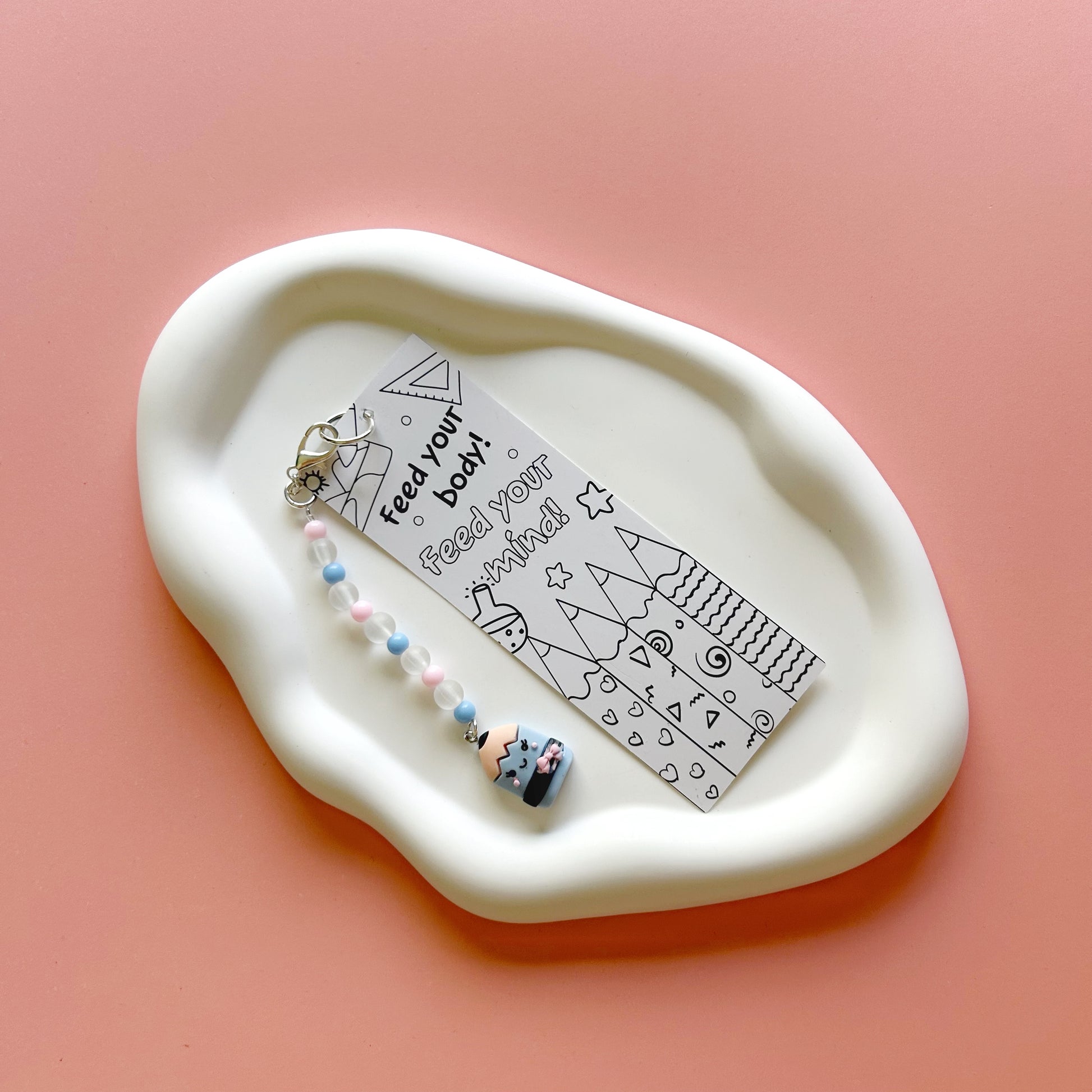 Add a splash of fun to reading time with this playful double-sided bookmark! One side features colorful pencils with blue and pink beads and a charming pencil charm, perfect for little artists. Flip it over to discover a vibrant space theme adorned with colorful beads and a twinkling star charm. This bookmark is a delightful way for kids to mark their place while sparking creativity and imagination.
