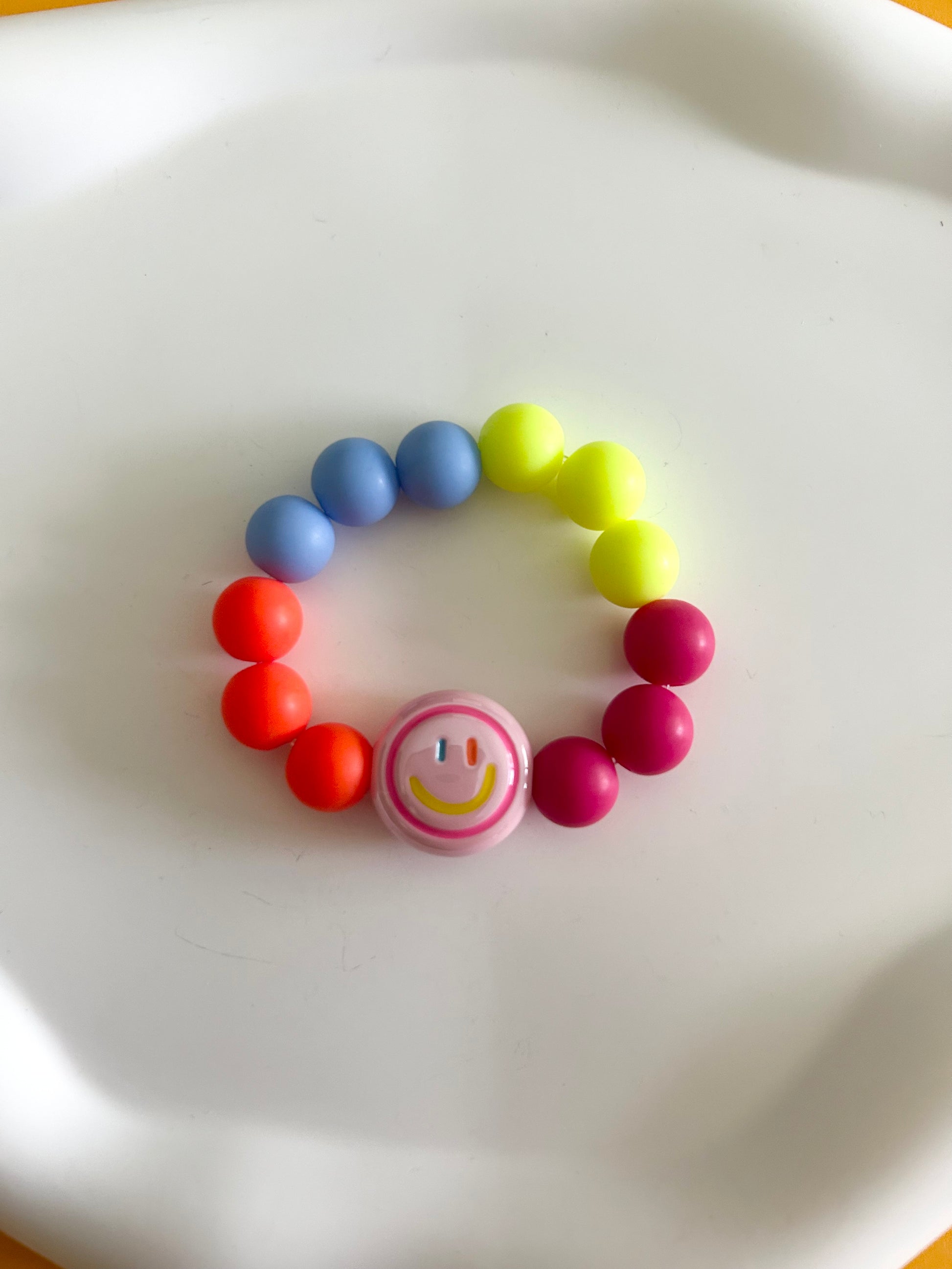 Add a splash of fun to any outfit with this bright multicolored kids bracelet featuring a big pink smiley face bead. Its cheerful design brings smiles and playful vibes, making it the perfect accessory for little ones who love colorful, happy style. Durable and comfortable, it’s ready for all-day adventures and endless fun.