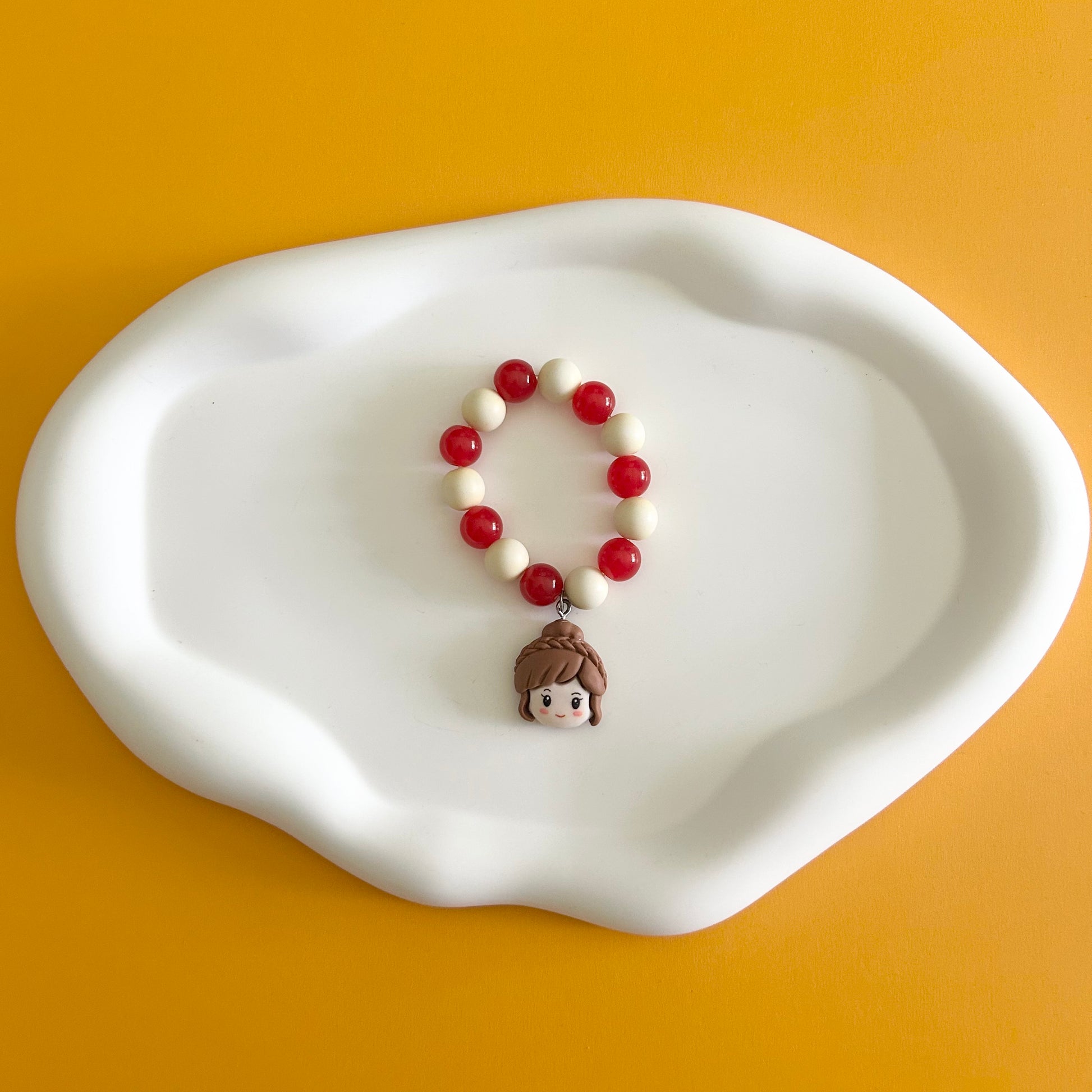 Add a splash of royal fun to any outfit with this playful red and yellow bracelet, featuring a charming princess face charm. Perfect for little dreamers who love a touch of fairy tale magic every day!
