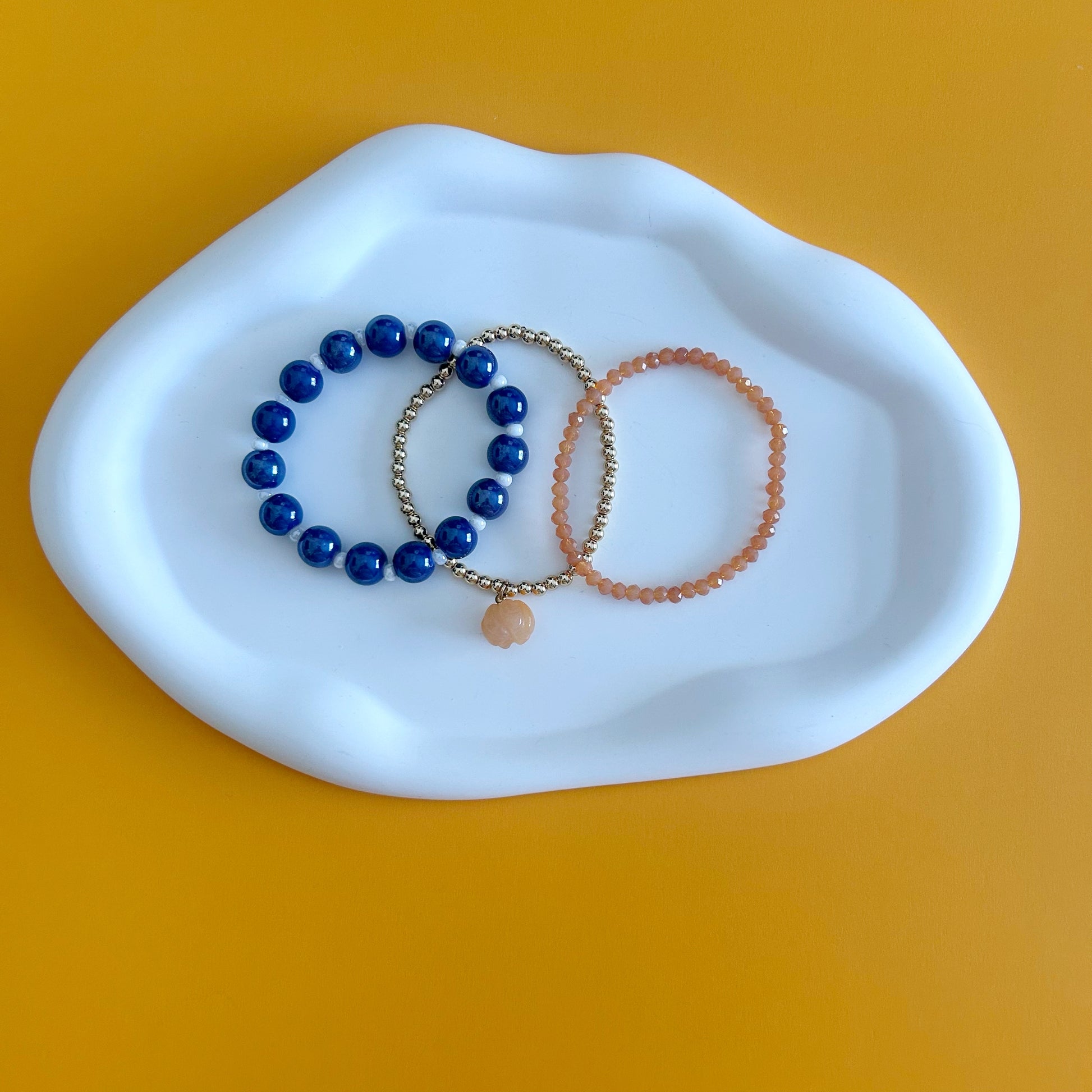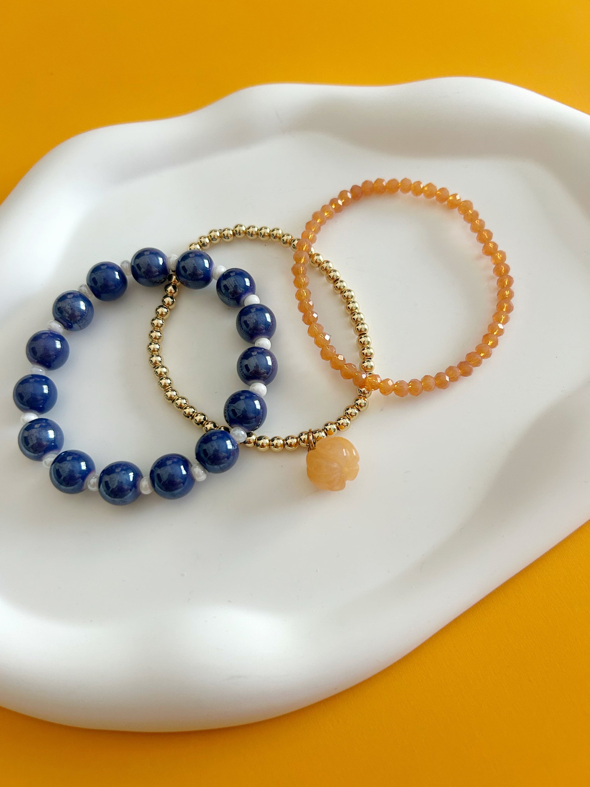 Get ready for fall with this quirky and fun Pumpkin Stack! This beaded bracelet stack features a charming pumpkin charm - perfect for adding a touch of autumn to any outfit. (Plus, it's the perfect accessory for all your pumpkin patch adventures!)