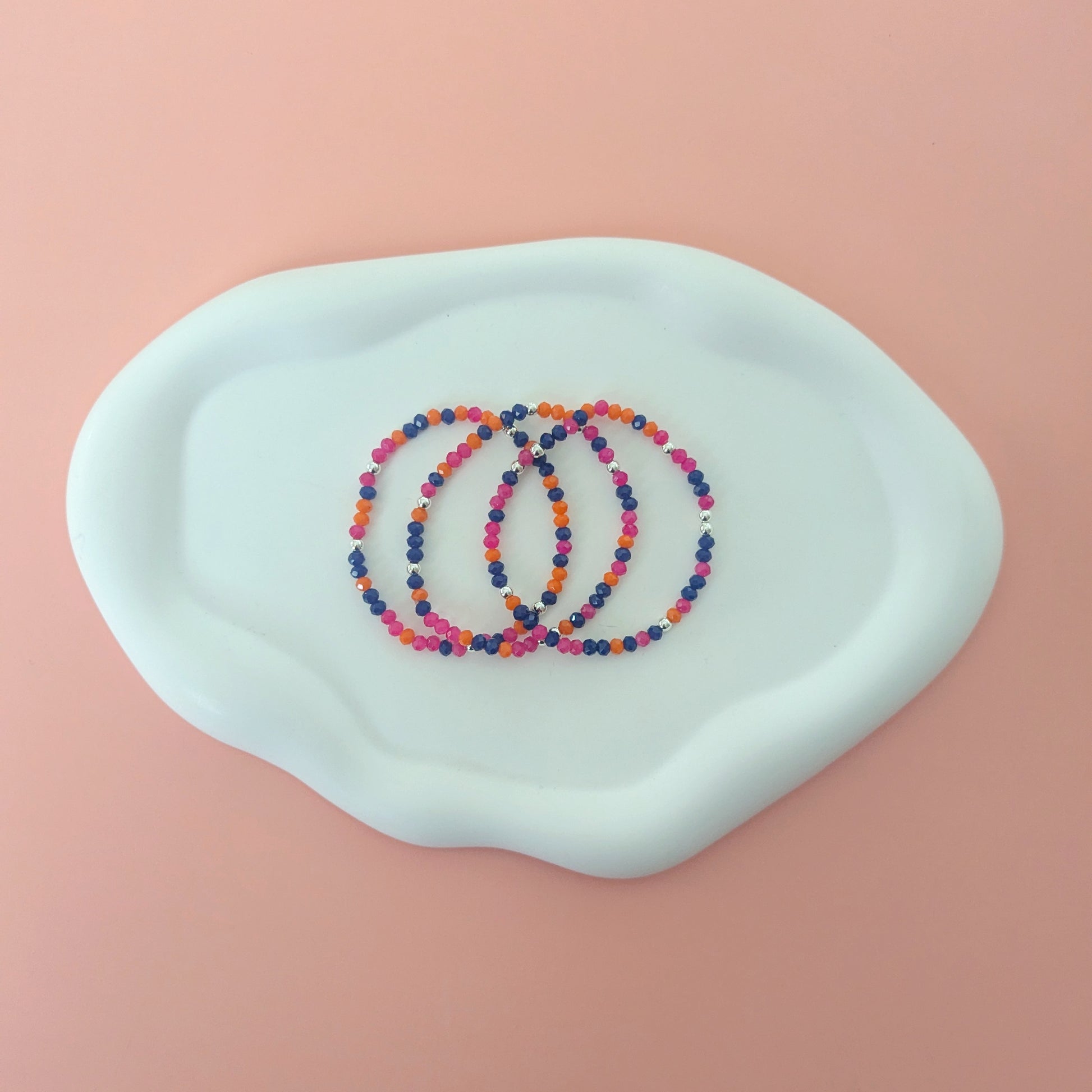 Add a pop of color to your outfit with our Purple and Orange Bracelet Stack. Featuring vibrant Purple, Orange and Pink beads, this bracelet stack is perfect for adding a touch of Halloween vibes to your look. Elevate your style with this unique accessory.