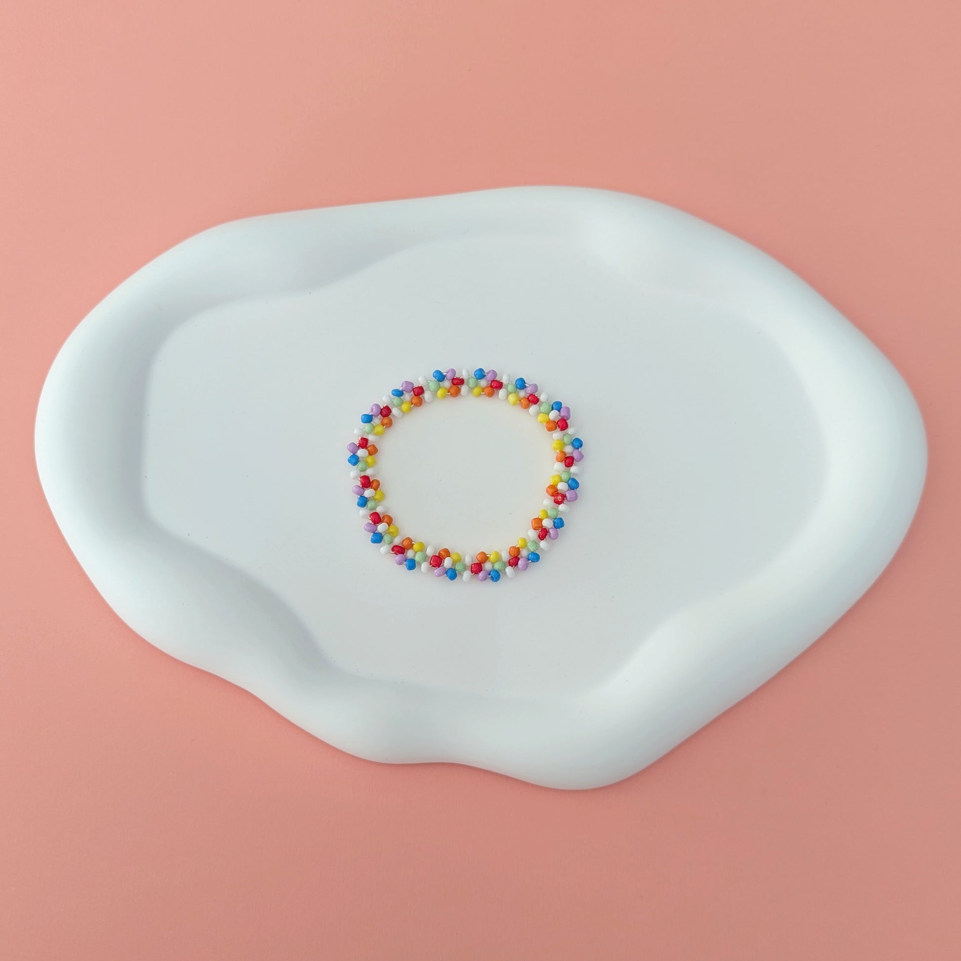 Add a touch of joy and color to your outfit with our Rainbow Daisy Bracelet. The vibrant rainbow hues and delicate daisy design will surely bring a smile to your face. Perfect for adding a playful and cheerful touch to any look. Spread joy and positivity with this bracelet.