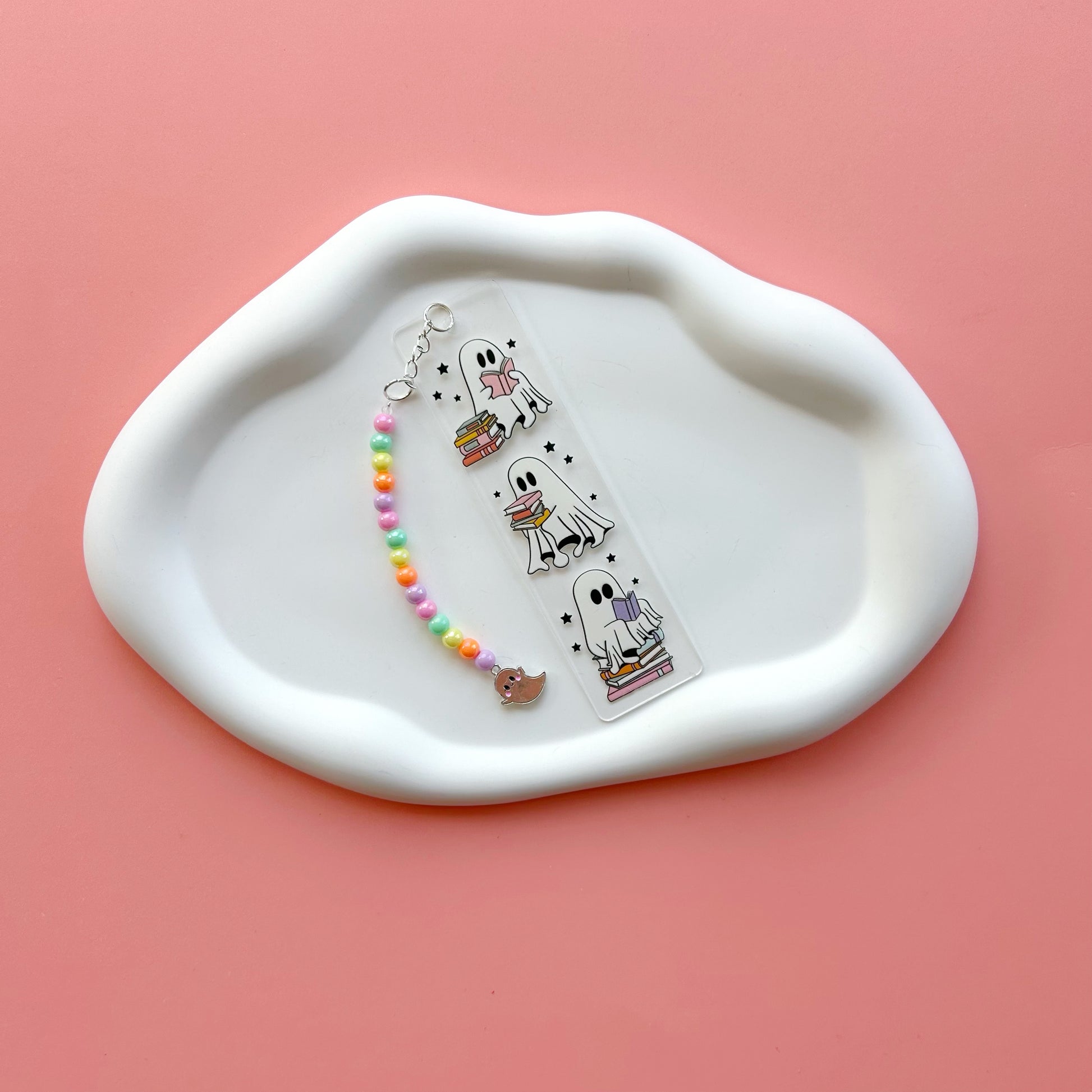 Add a spooky twist to your reading sessions with the Reading Ghost Bookmark! This charming beaded bookmark features adorable ghost characters engrossed in their favorite books, making it a delightful companion for every page turn. Perfect for book lovers who enjoy a playful touch, it keeps your place with whimsy and style.