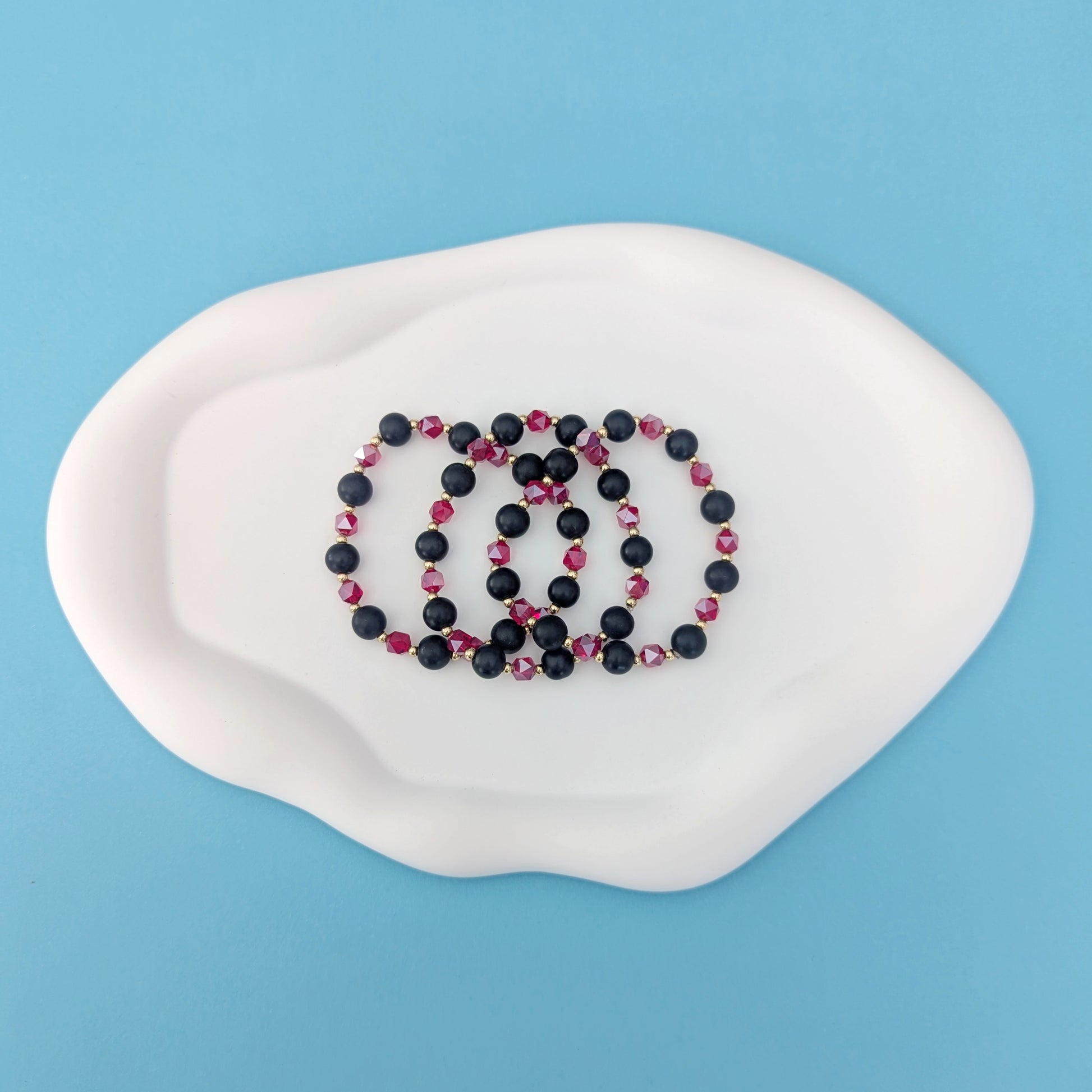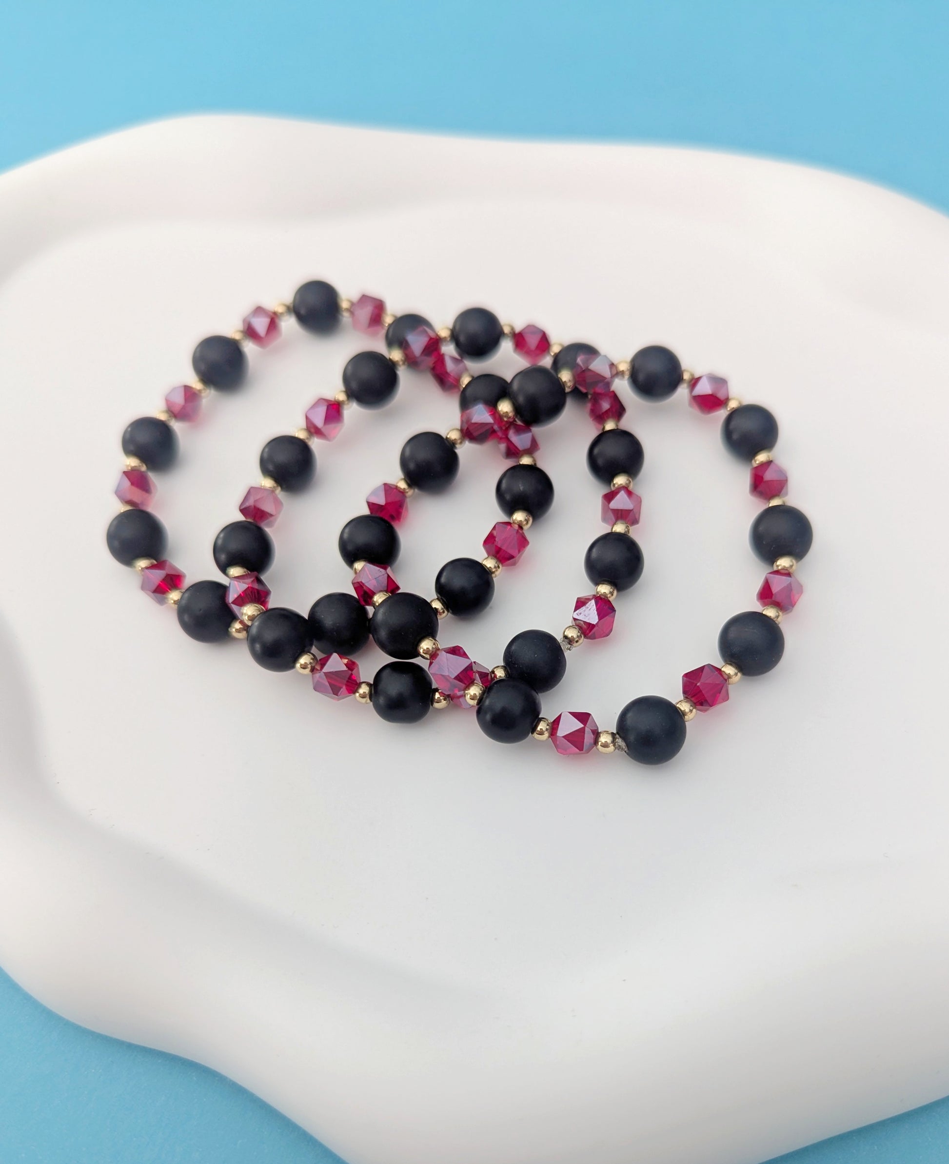 Indulge in luxury with our Red and Black Stack. Classy and iridescent, this stack will elevate any outfit to new levels of sophistication. Make a statement with this exclusive stack that exudes elegance.
