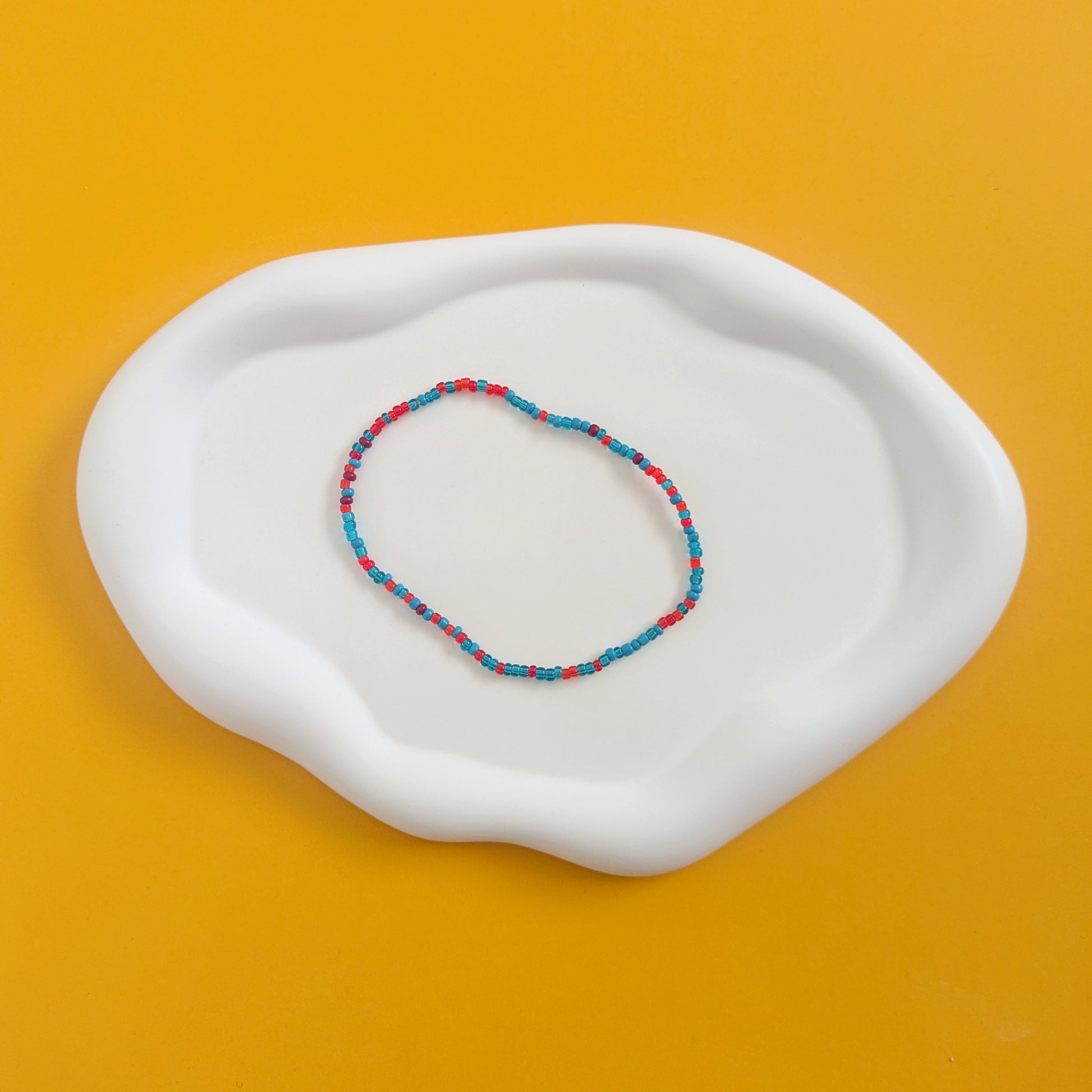 This red and turquoise anklet features a beautiful blend of earthy and vibrant tones. Perfect for adding a pop of color to any outfit, this anklet is crafted with high-quality materials for long-lasting wear. Elevate your style and accessorize with this eye-catching piece.