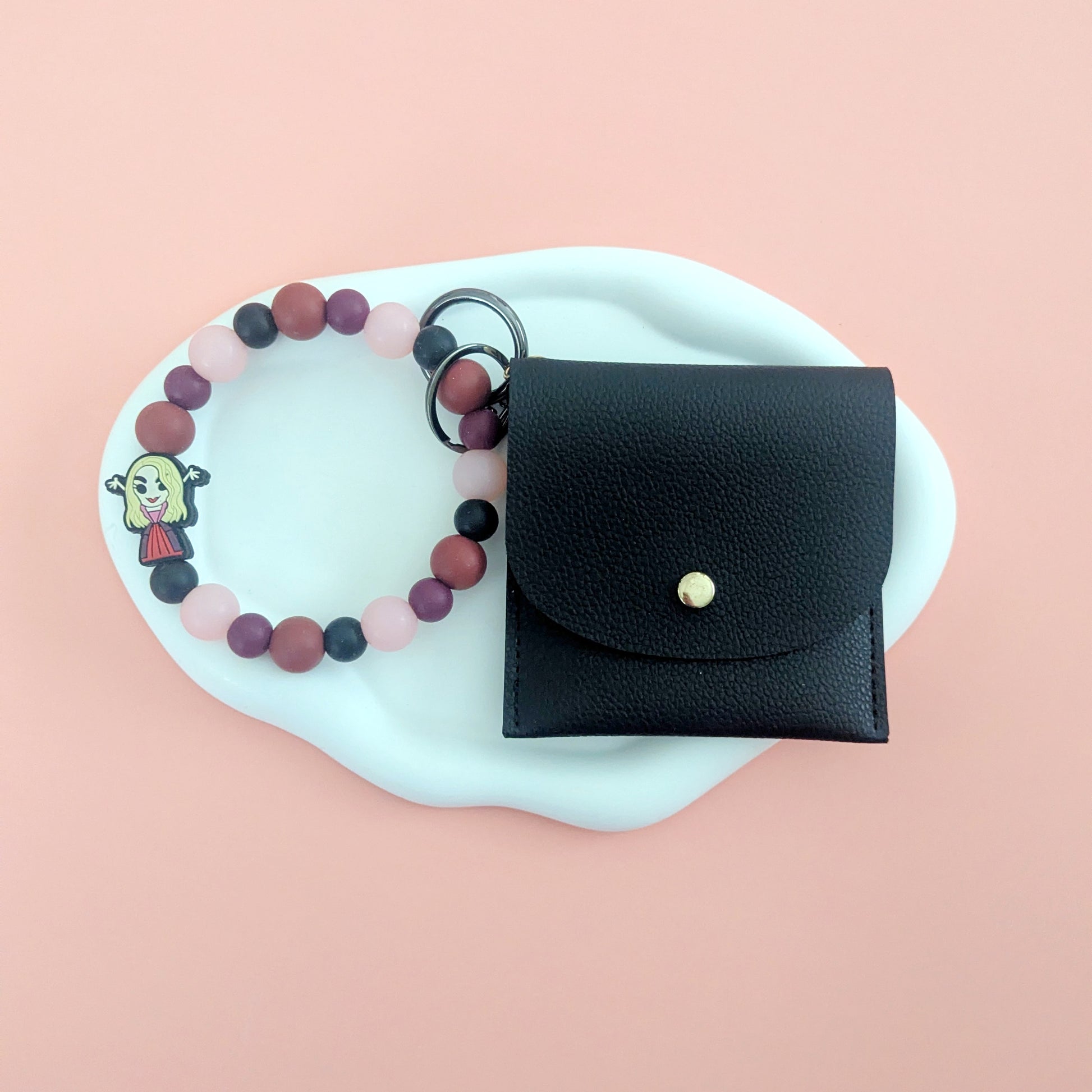 Introducing the Sarah Sanderson Wallet - the perfect accessory for any fan of the beloved movie, Hocus Pocus. This stylish wristlet and wallet set features the iconic character, Sarah Sanderson, and is perfect for keeping all your essentials organized and within reach. Add a touch of magic to your daily routine with this must-have accessory.