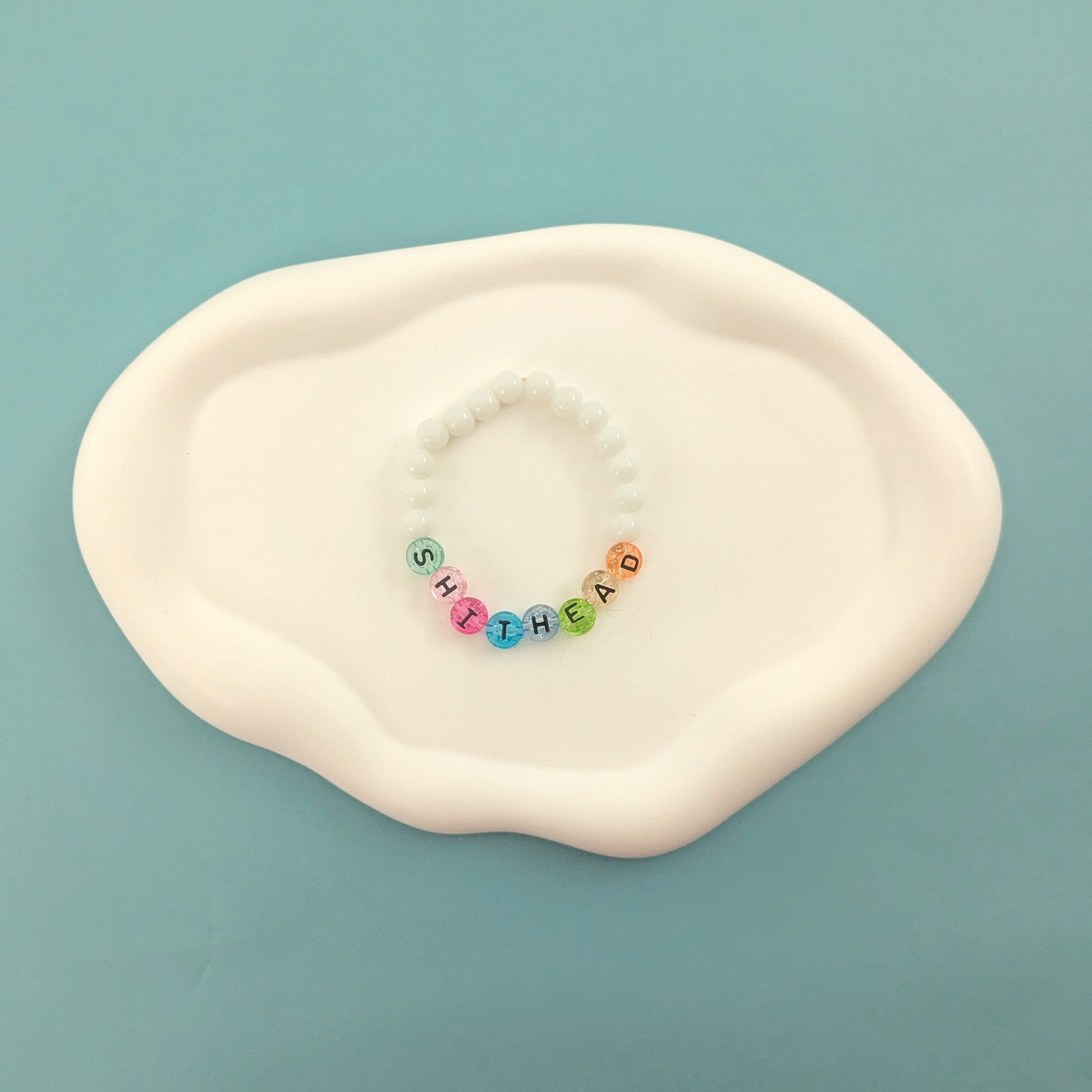 Wear our Shithead Bracelet for a playful, sassy addition to any outfit. With bright colors and a funny tone, this bracelet is perfect for someone who doesn't take themselves too seriously. A must-have for those who love a good word play and aren't afraid to show their quirky side.