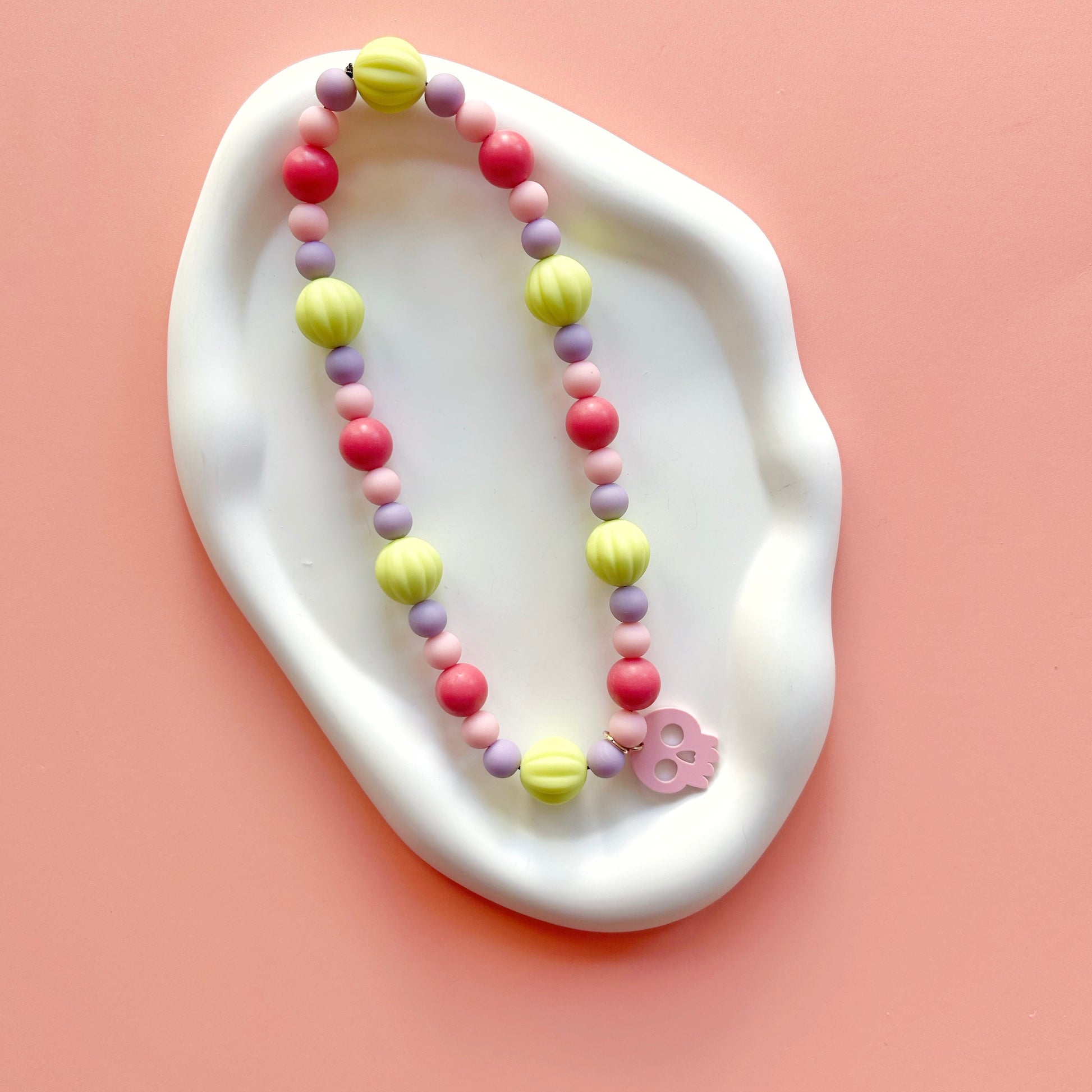 Add a fun and spooky touch to your little one’s Halloween look with this playful pink skull necklace. Lightweight and kid-friendly, it’s the perfect accessory to brighten up any costume while keeping the spirit of the season lighthearted and fun.