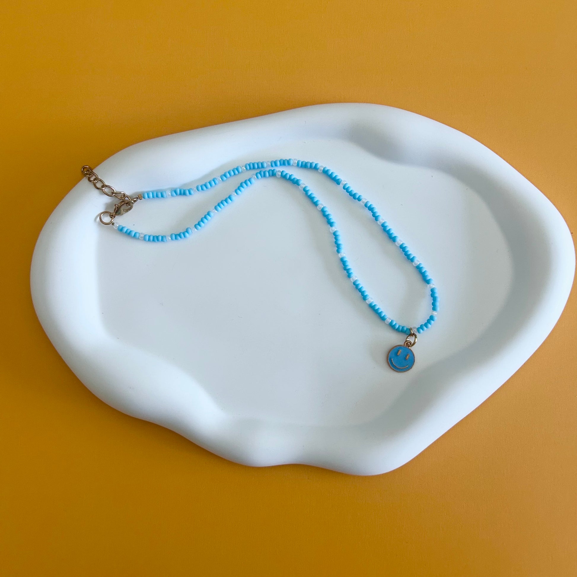 Add a splash of fun to your look with this playful blue and white smiley face charm choker. Its cheerful design brightens any outfit, making it the perfect accessory to express your happy vibe every day. Lightweight and comfortable, it’s ideal for adding a touch of whimsy wherever you go.