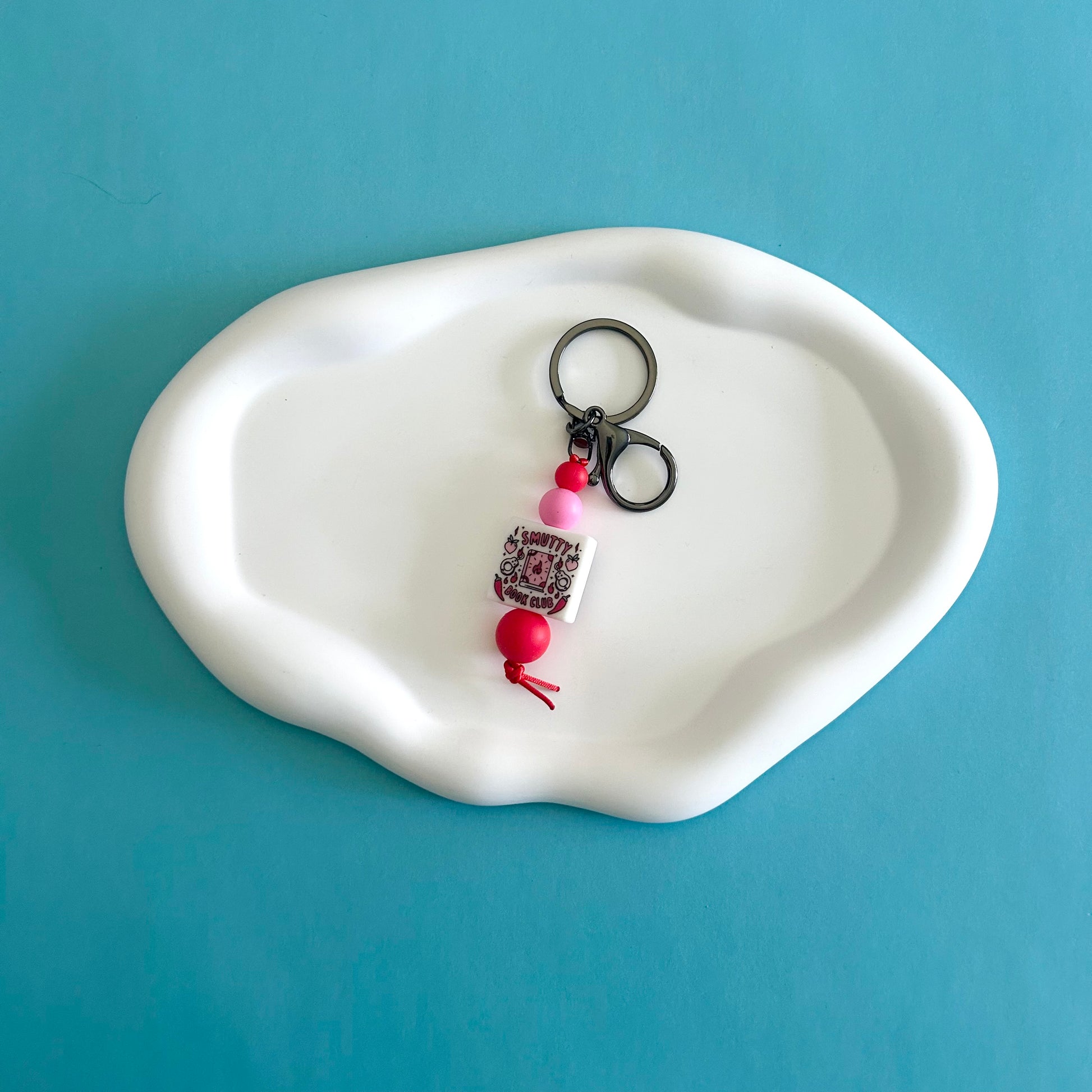 Add a cheeky touch to your keys with this playful red and pink keychain featuring a bold smutty book club bead. Perfect for book lovers who enjoy a little spice, it’s a fun way to show off your naughty reading habits wherever you go.