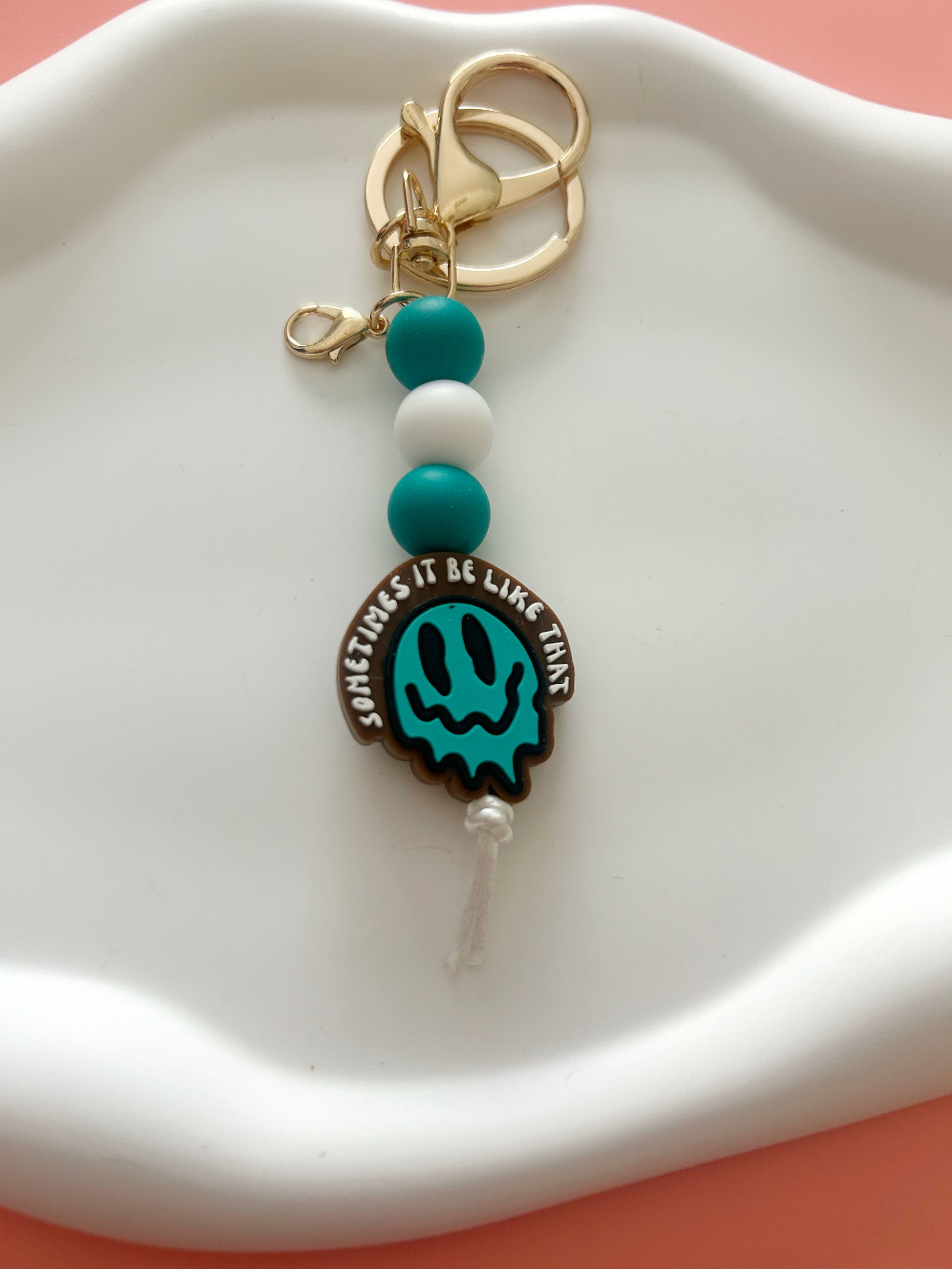 Carry a little humor everywhere you go with the Sometimes It Be Like That Keychain. Featuring a melting smiley face and a cheeky phrase, this playful accessory adds a fun twist to your keys or bag. Perfect for reminding yourself—and others—that some days are just... like that!
