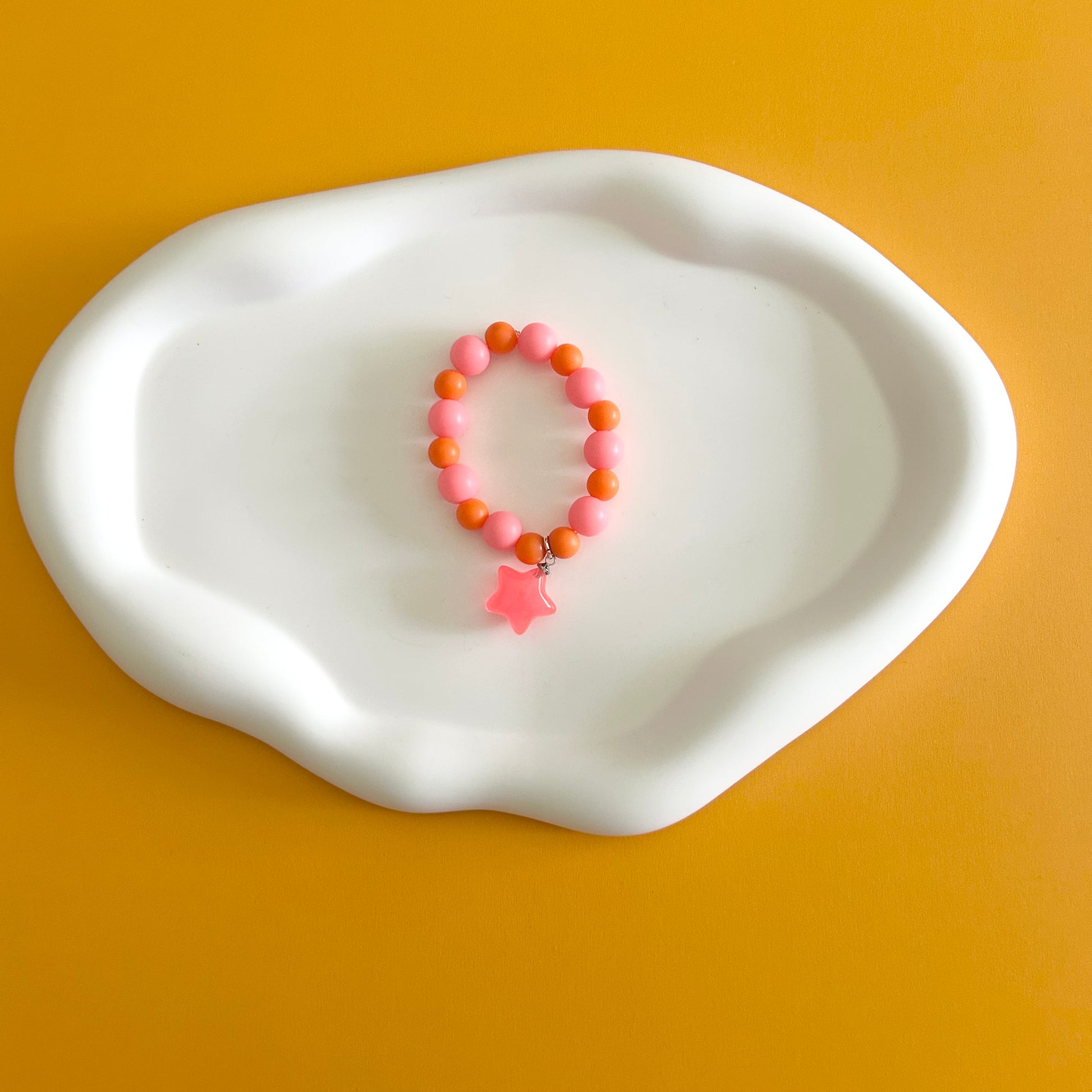 Add a splash of fun to any outfit with this playful pink and orange kids bracelet, featuring a charming pink star charm. Perfect for little hands, it’s a bright and cheerful accessory that sparks joy and imagination.