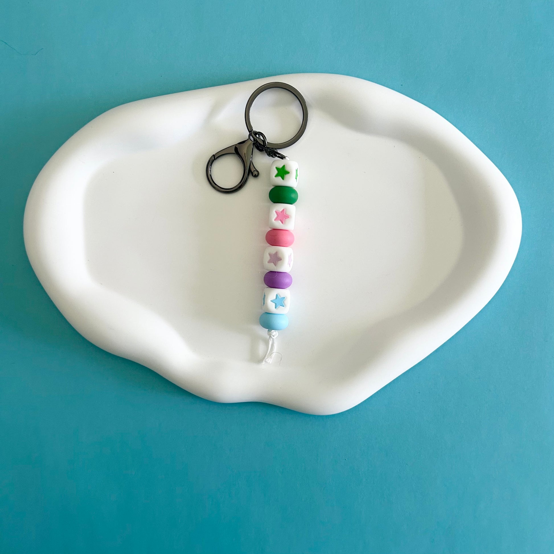Add a splash of fun to your keys with this playful Star Keychain. Featuring white square beads each adorned with a colorful star at the center, it’s a cheerful accessory that brightens your day and keeps your keys easy to find. Perfect for adding a touch of whimsy wherever you go!