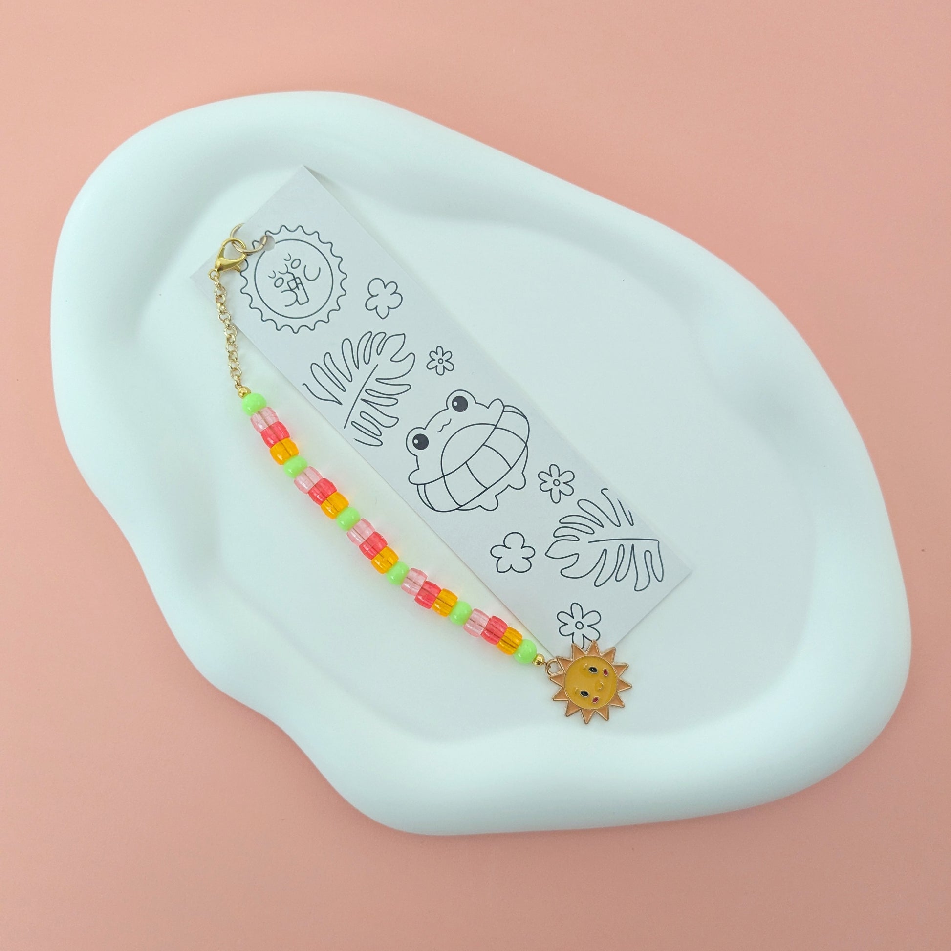 Effortlessly find your place in the book with our Swimming Frog Bookmark! This innovative bookmark features a floating frog design and can be colored in to add a personal touch. The clip-on bead strand includes a charming Sunshine charm, making it a perfect gift for any book lover.