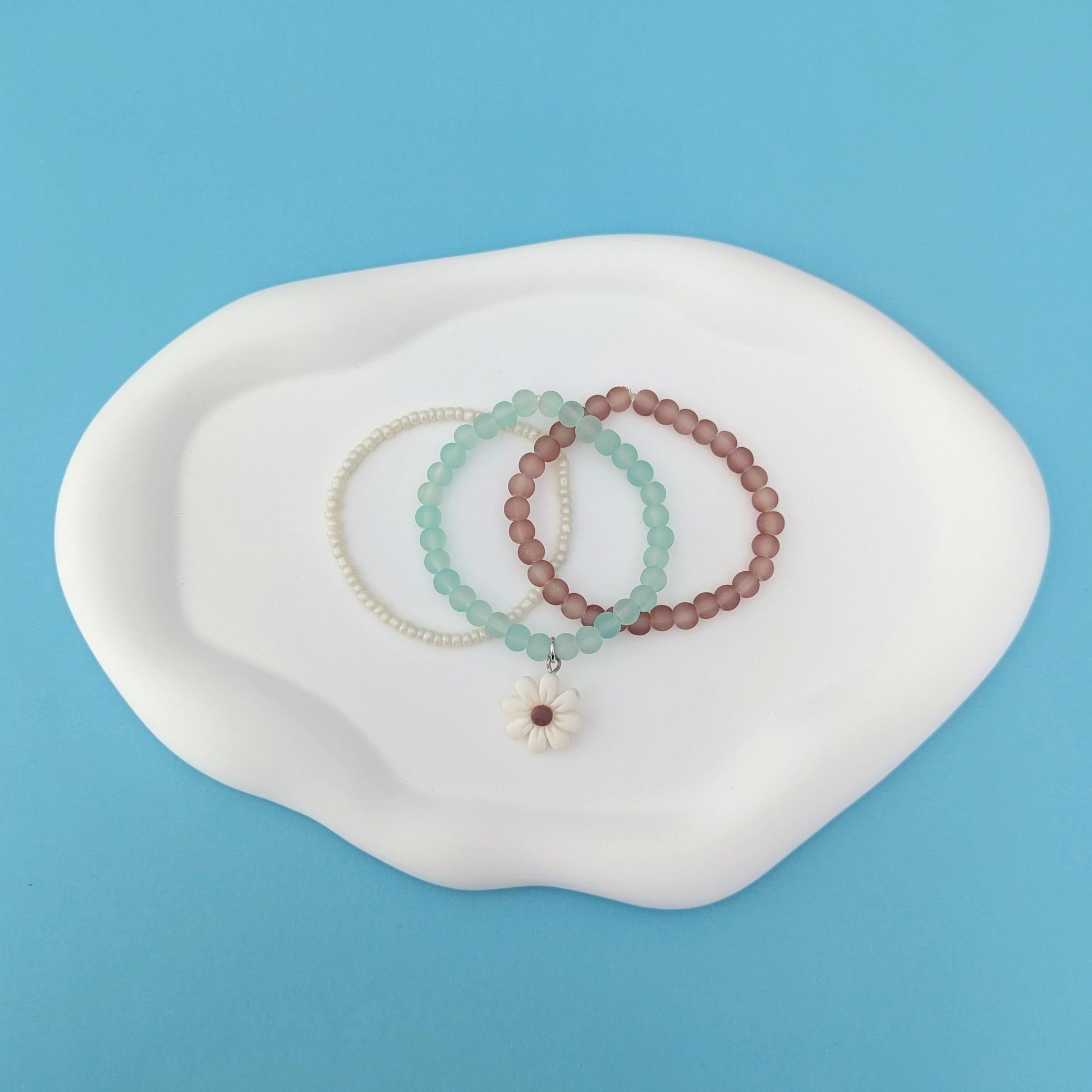 Elevate your style with our White Daisy Charm Stack. Made with a subtle color palette of green and brown, this bracelet stack adds a touch of nature to any outfit. The daisy charm is a simple yet beautiful addition, perfect for those who prefer a neutral aesthetic.