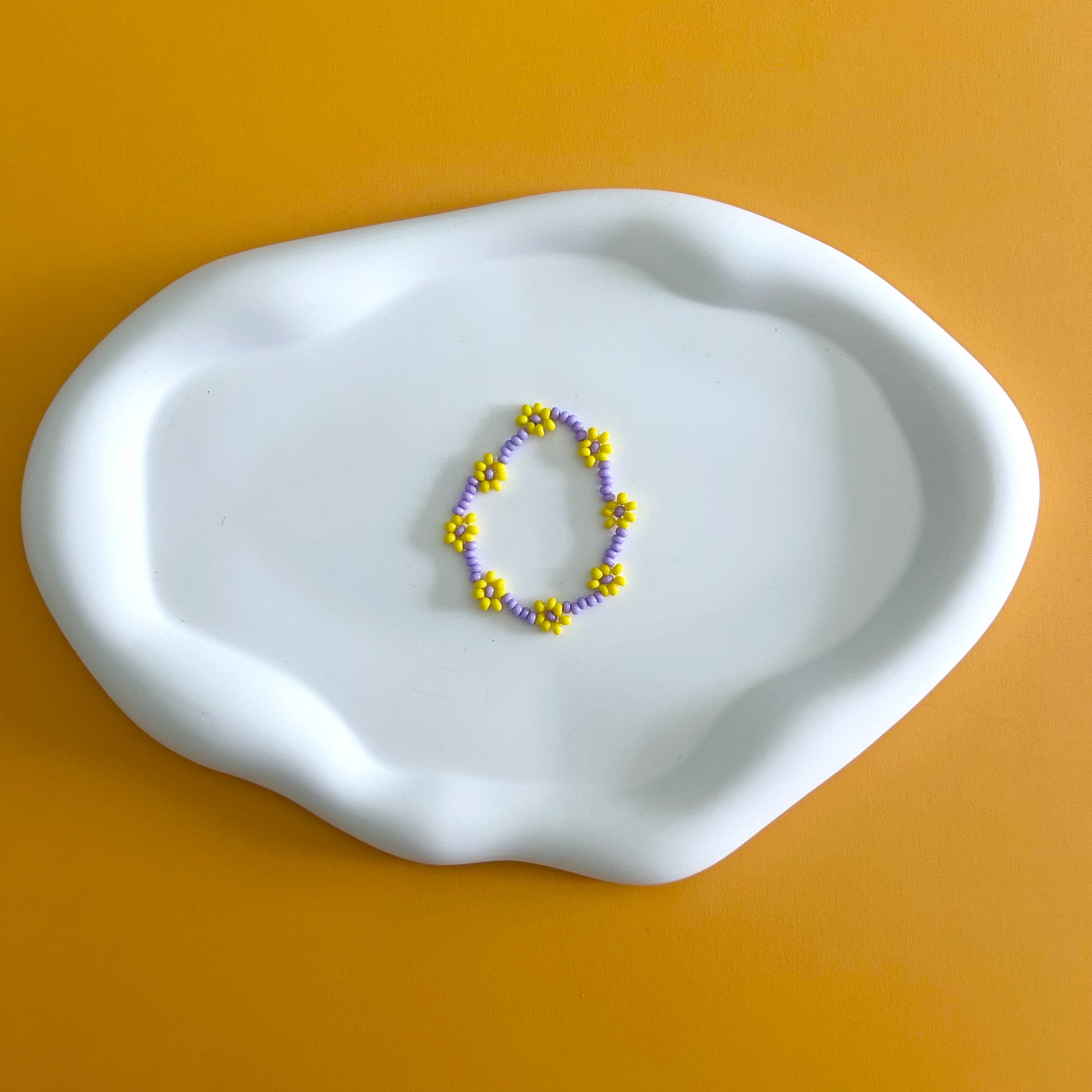 Add a splash of sunshine and a pop of purple fun with this playful Yellow Daisy Bracelet! Perfect for kids who love bright colors, this cheerful accessory features charming yellow and purple daisies that brighten any outfit. Lightweight and comfy, it’s ideal for everyday wear or special playdates. Let your little one’s style bloom with this delightful bracelet!